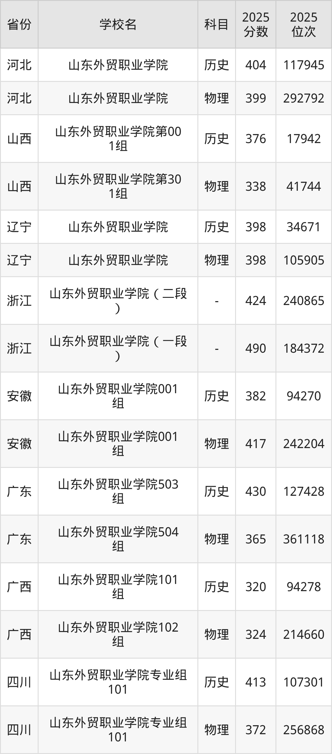 下面是山东外贸职业学院2025年录取分数线各省汇总,一起来了解下吧。