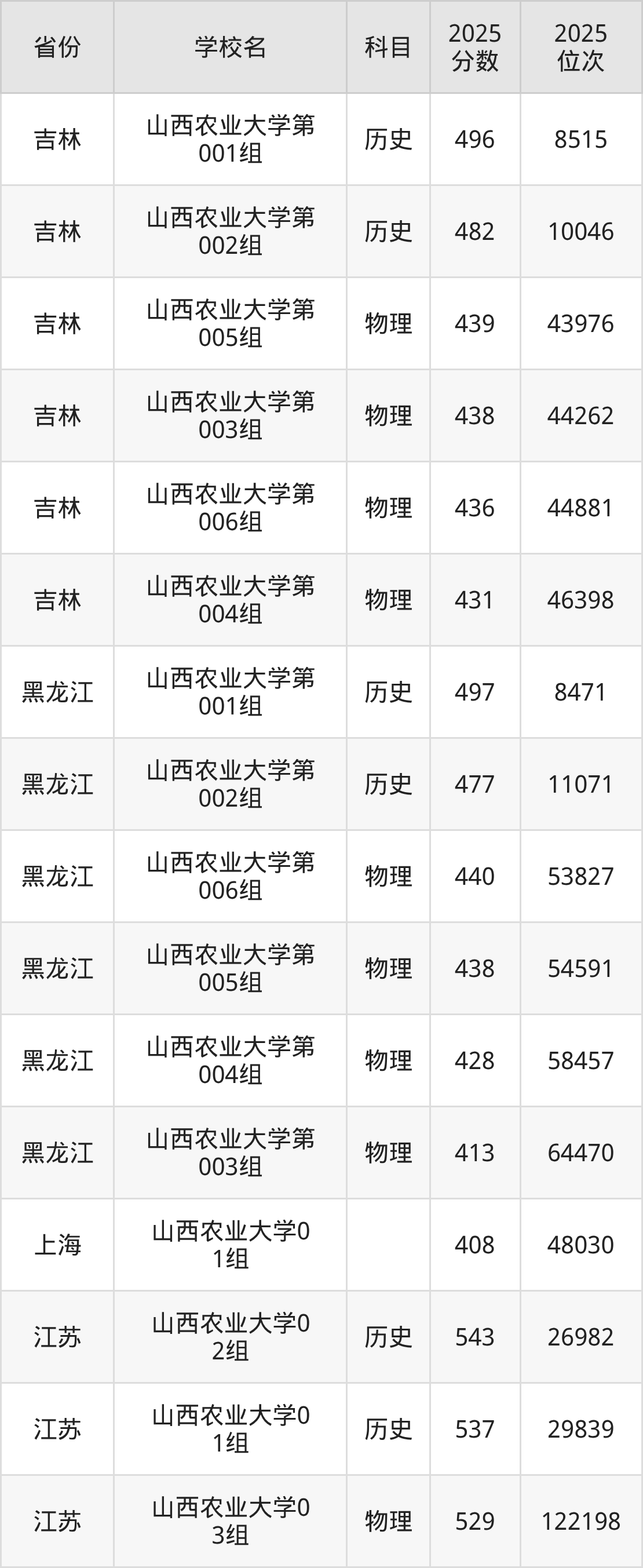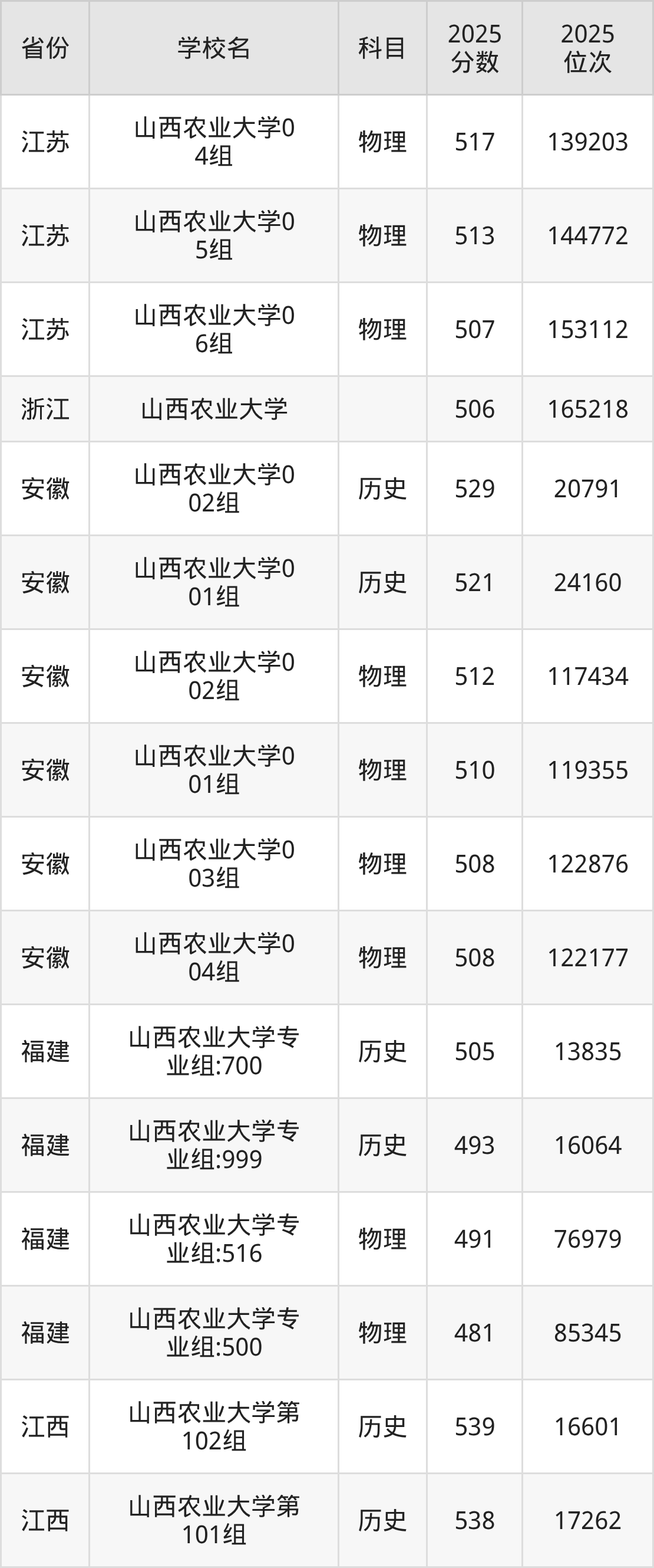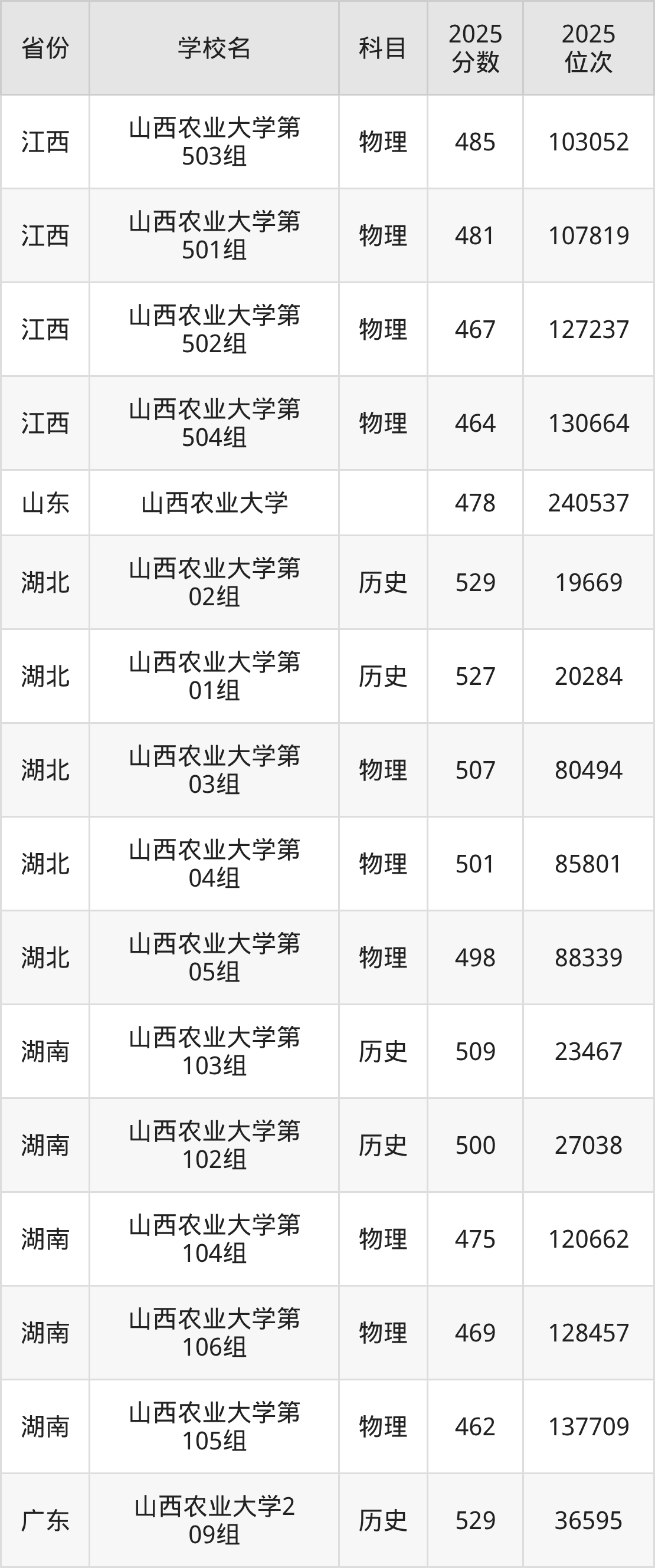 | 山西农业大学第 312组(地方 专项) | 物理 | 505 | 56932 |