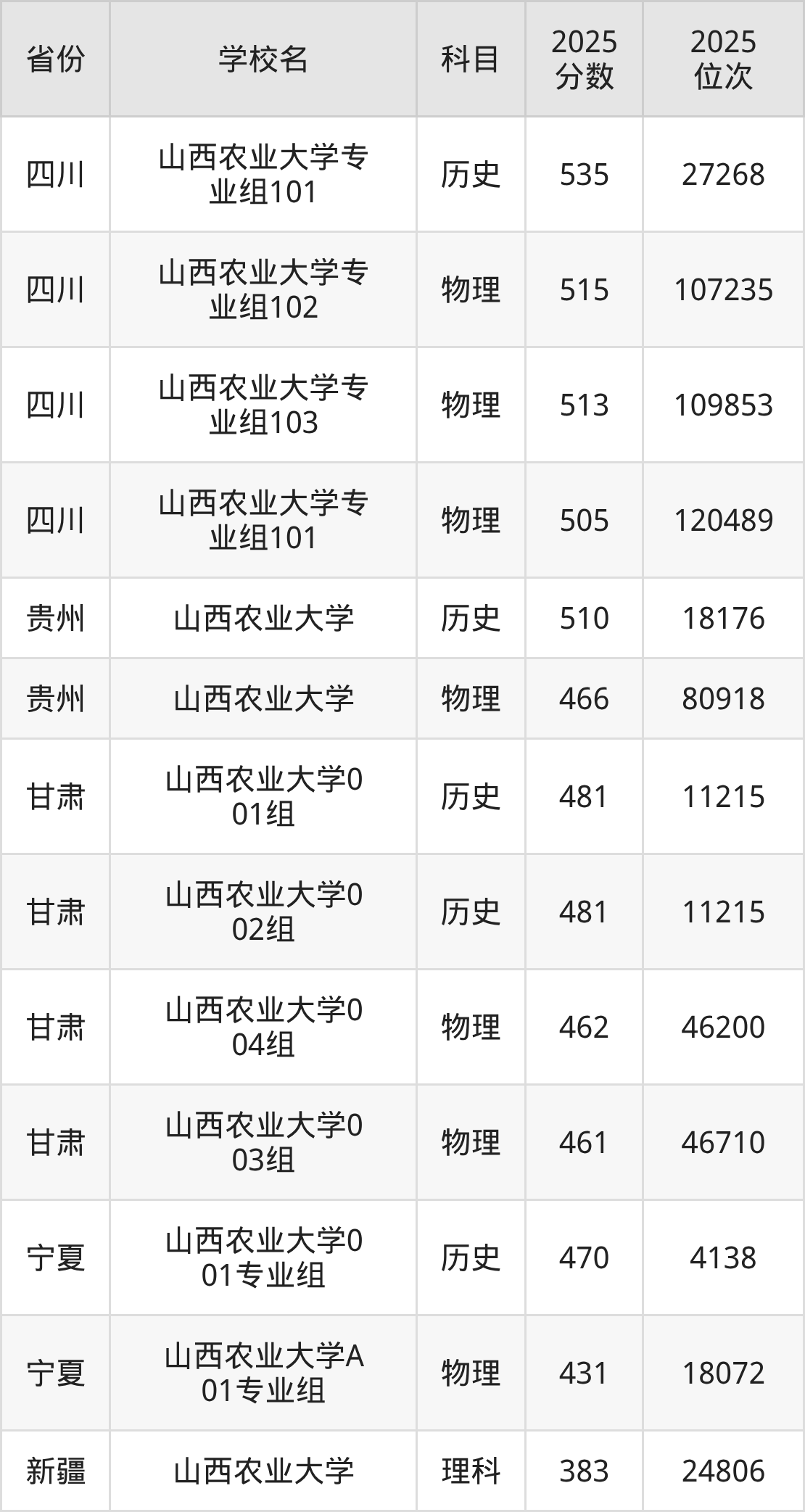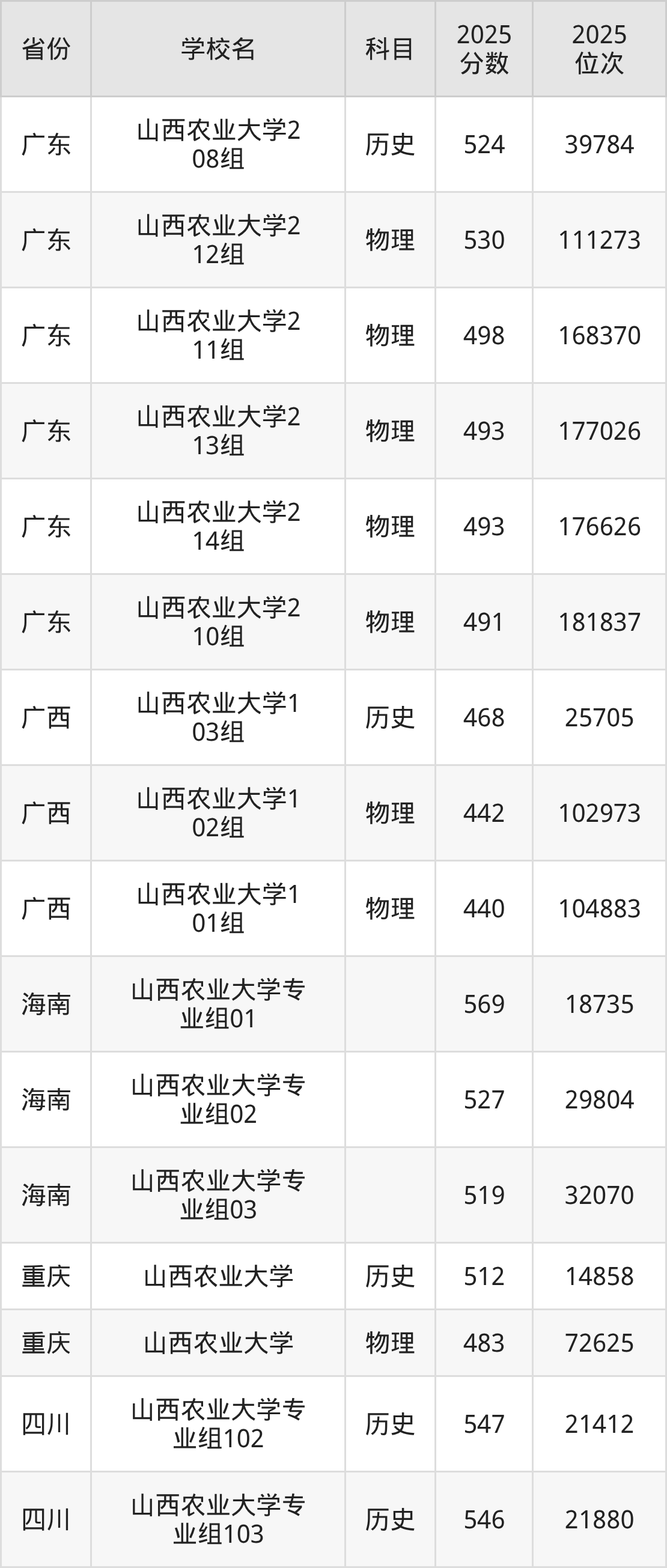 2025年山西农业大学在省内分历史物理科目类录取,其中历史类最低分是512分、对应位次是17068名;物理类最低分是461分,对应位次是90514名。