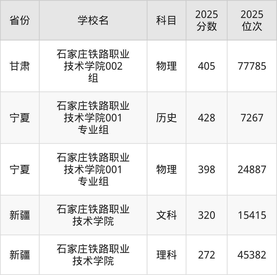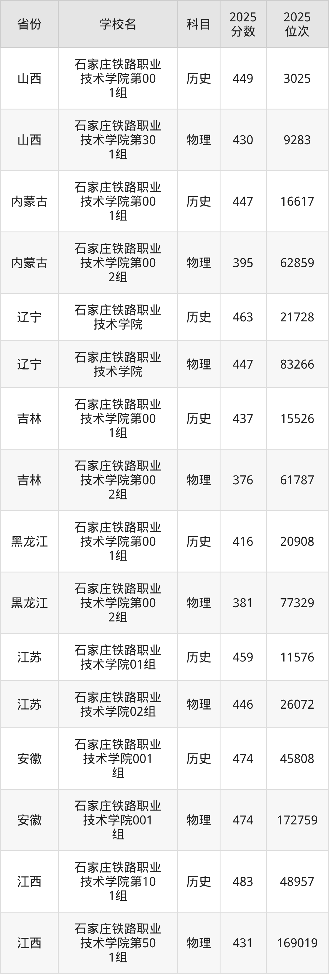 下面是石家庄铁路职业技术学院2025年录取分数线各省汇总,一起来了解下吧。