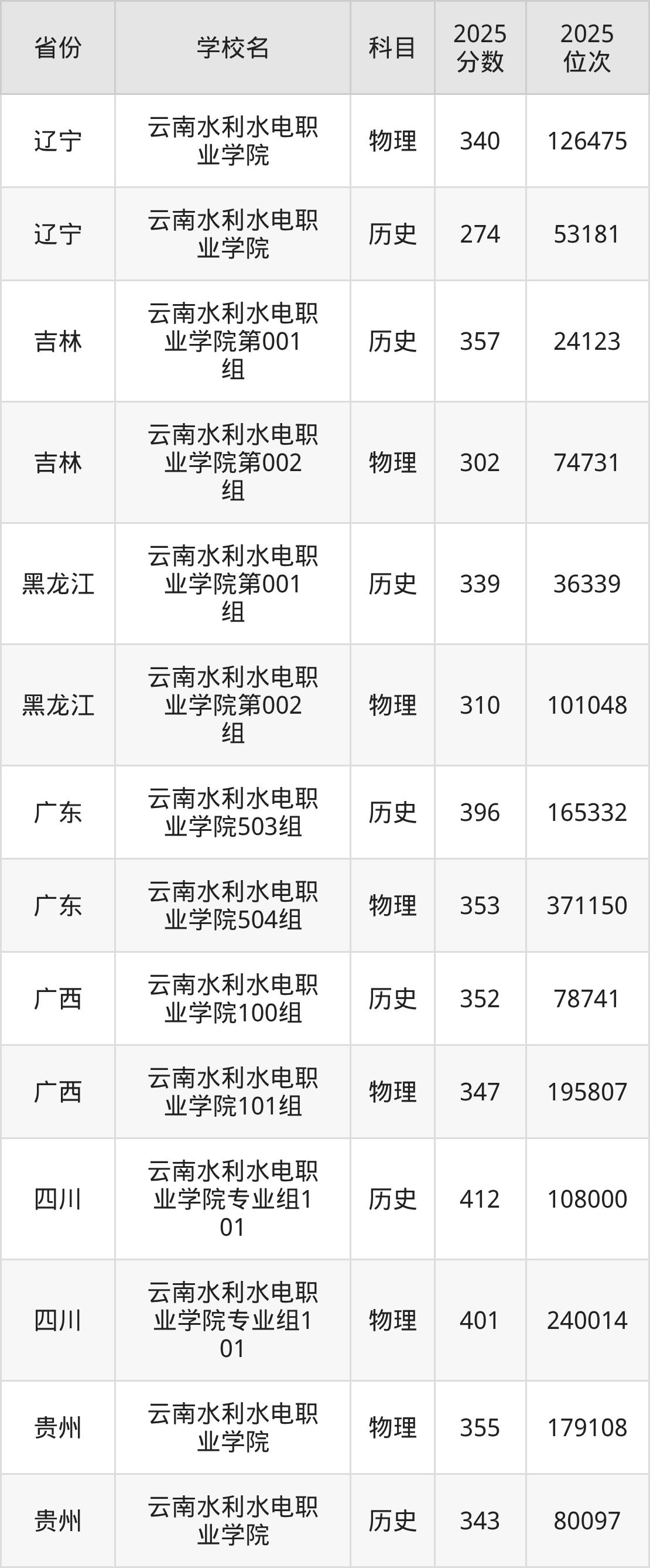 下面是云南水利水电职业学院2025年录取分数线各省汇总,一起来了解下吧。