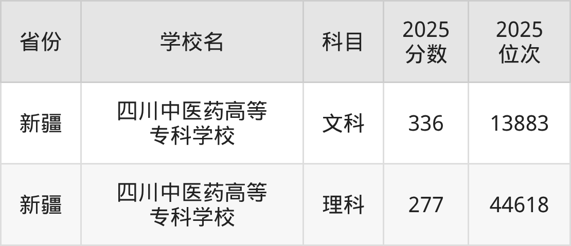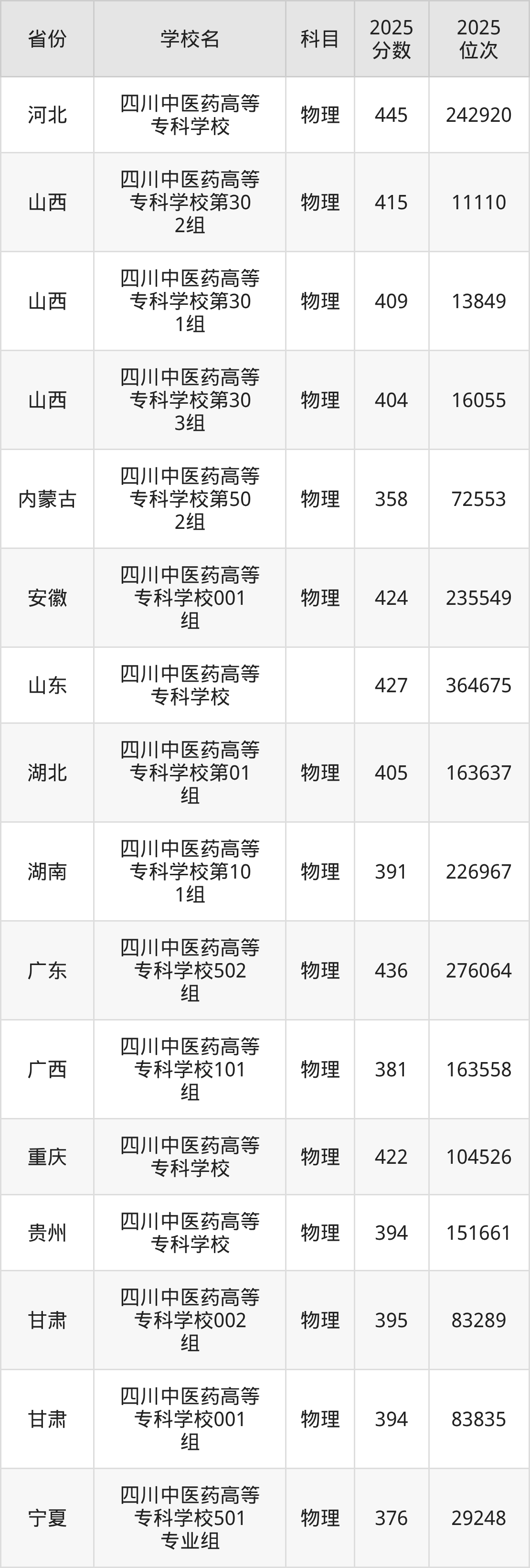 下面是四川中医药高等专科学校2025年录取分数线各省汇总,一起来了解下吧。