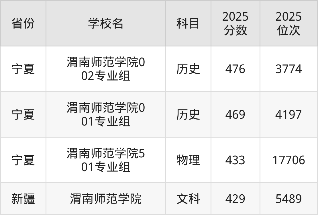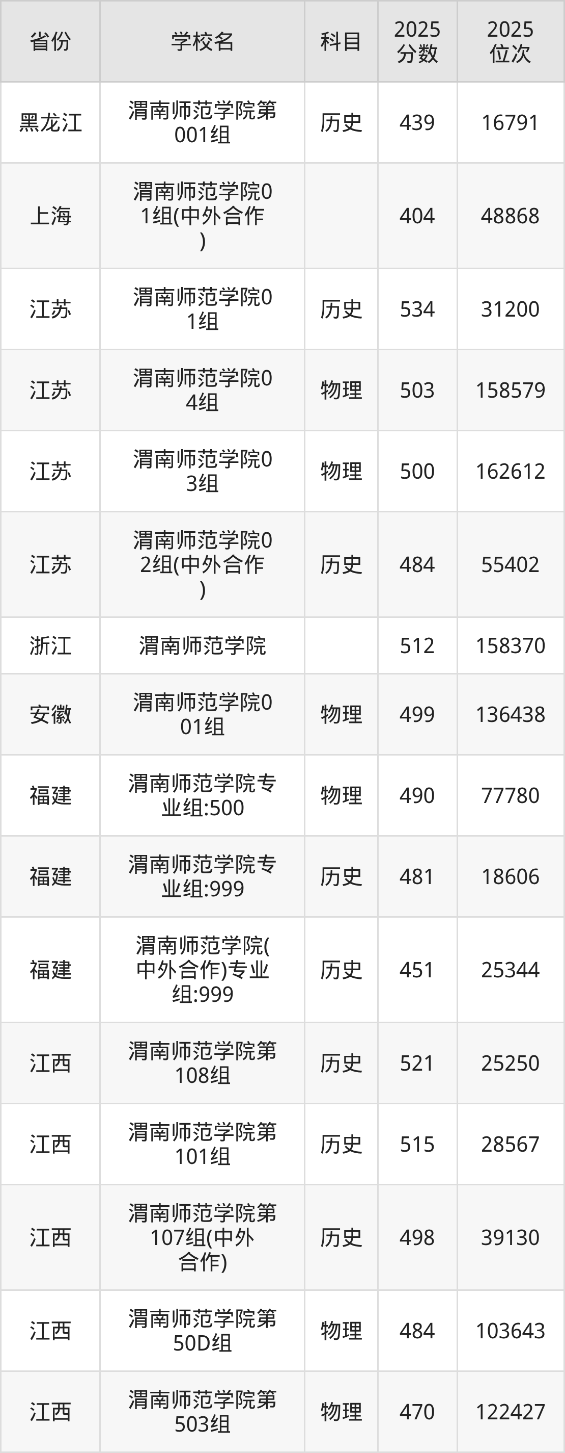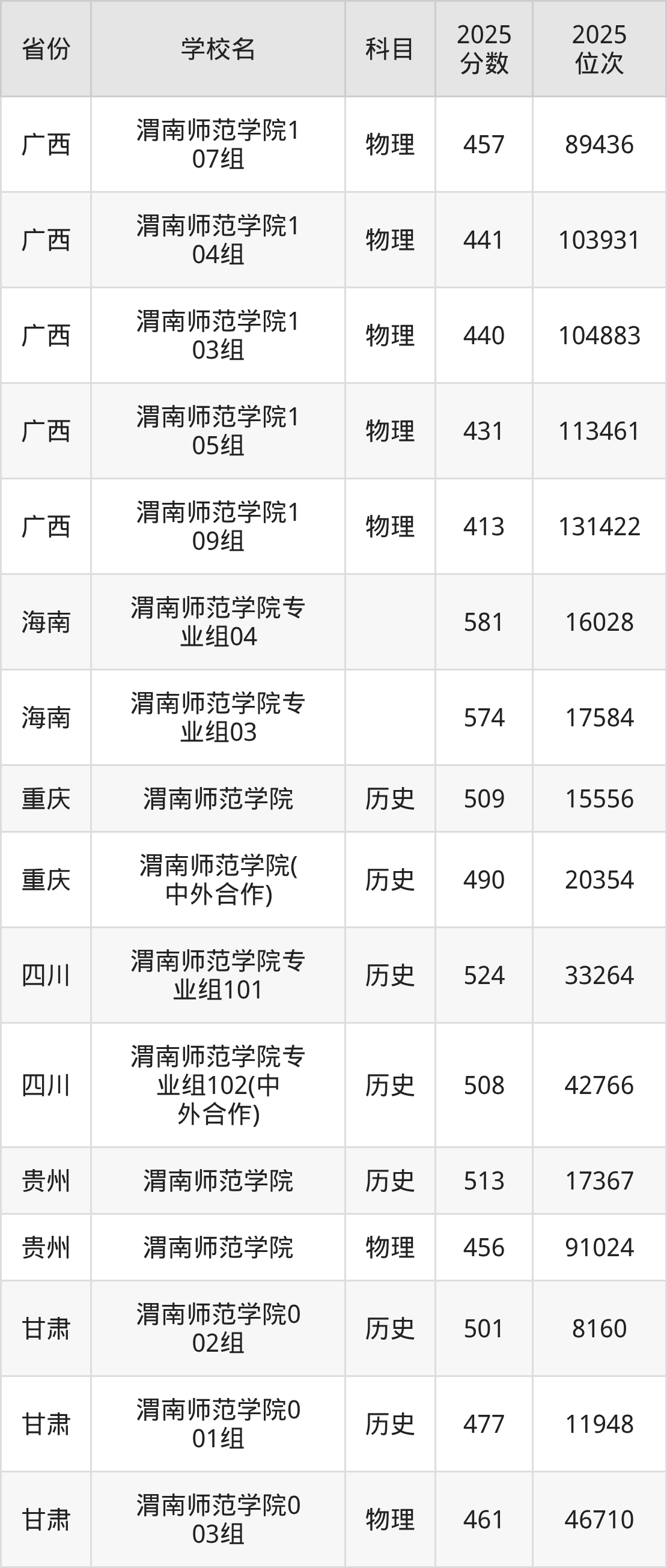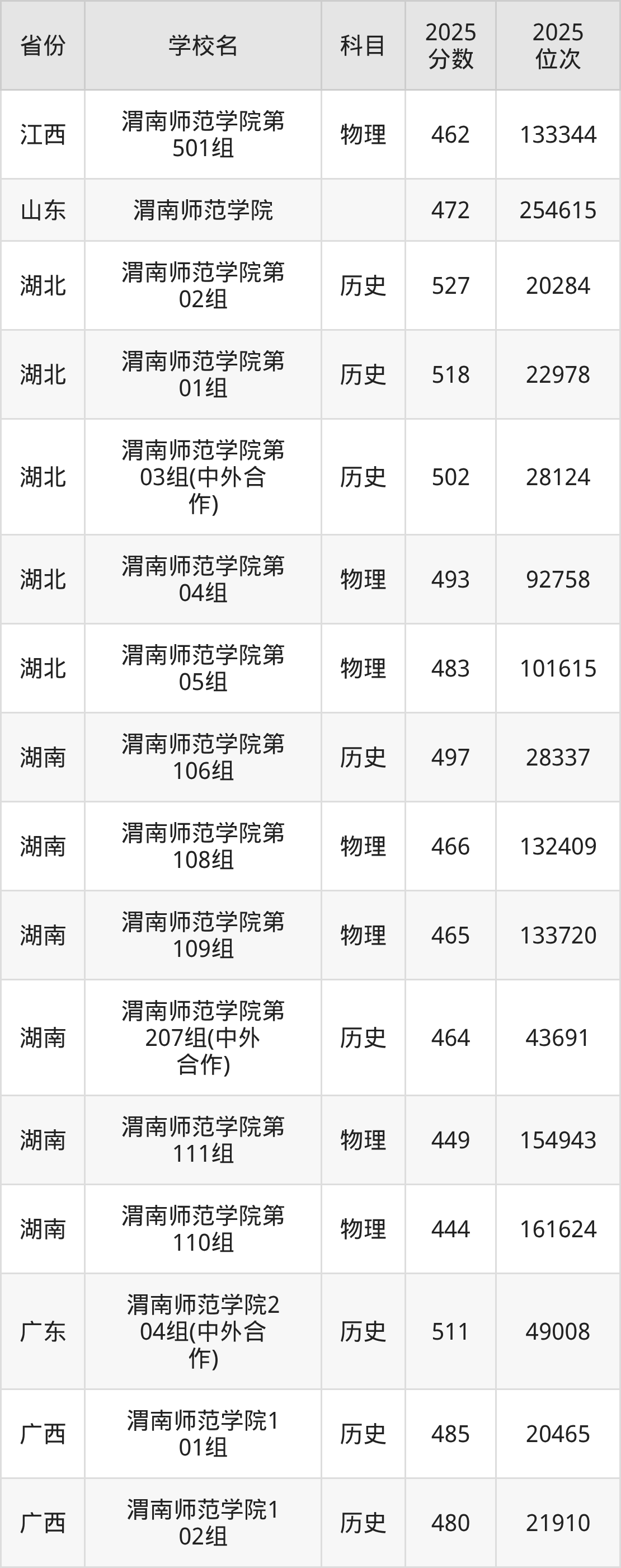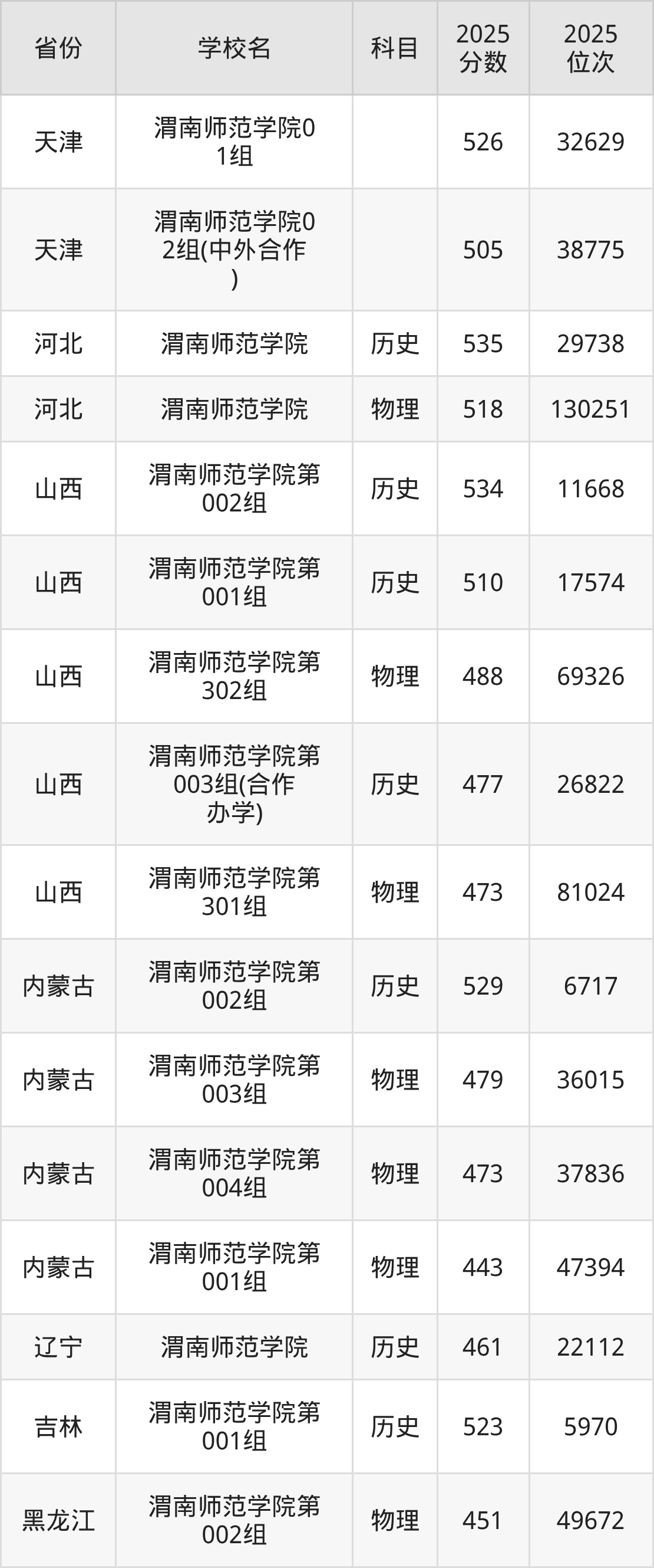 2025年渭南师范学院历史类最低分535分(29738名)、物理类最低分518分(130251名)。