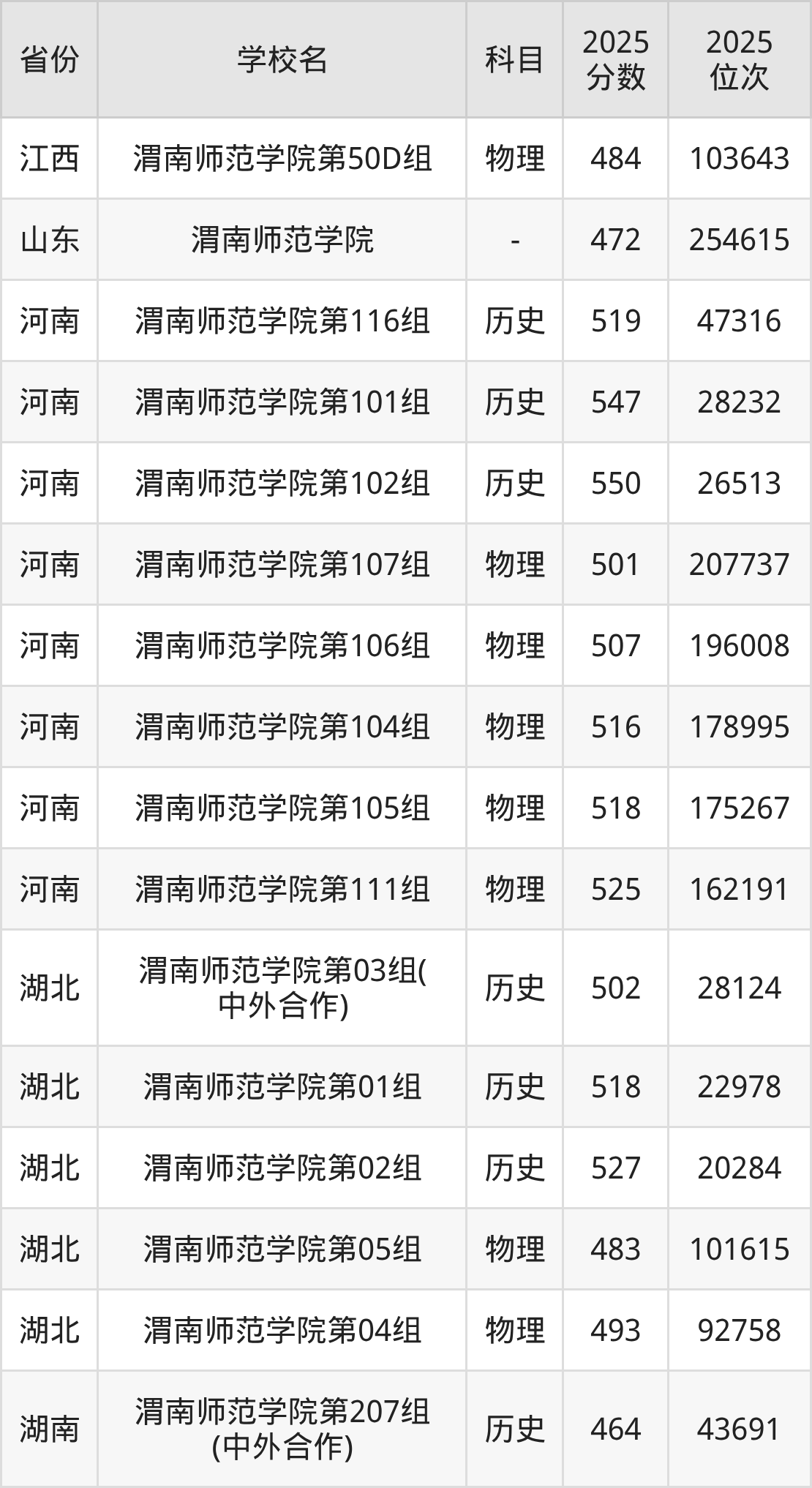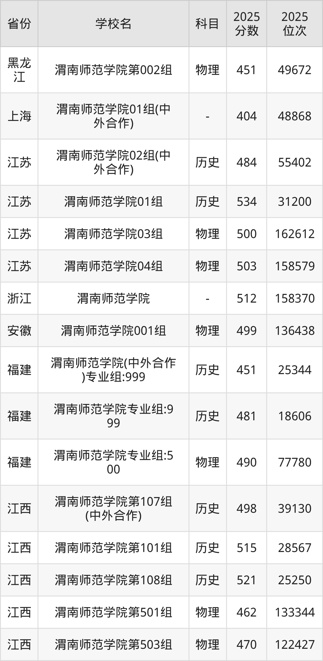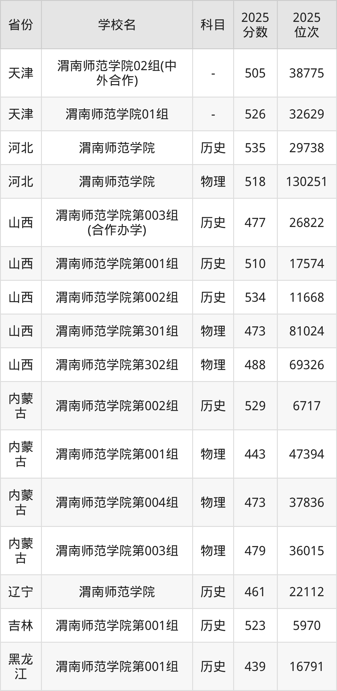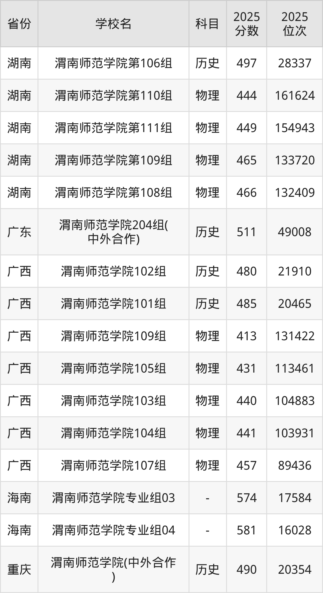 下面是渭南师范学院2025年录取分数线各省汇总,一起来了解下吧。