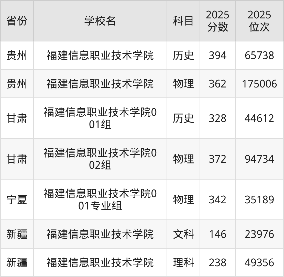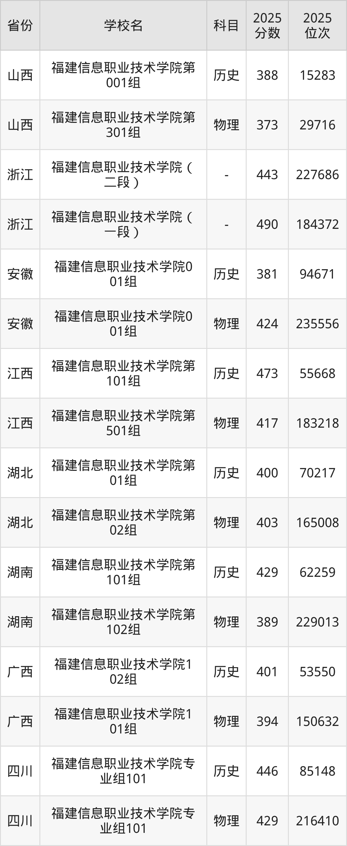 下面是福建信息职业技术学院2025年录取分数线各省汇总,一起来了解下吧。