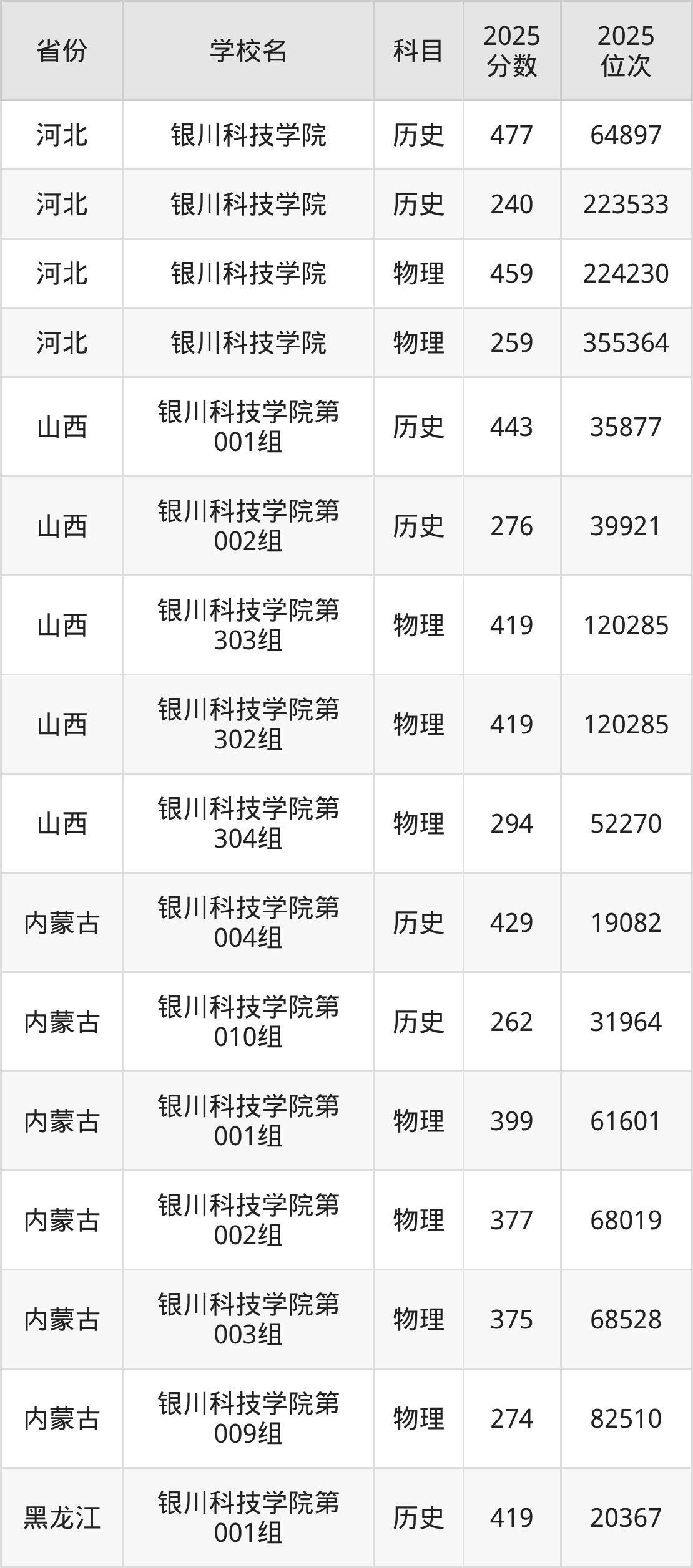 | 银川科技学院5 03专业组 | 物理 | 372 | 30025 |