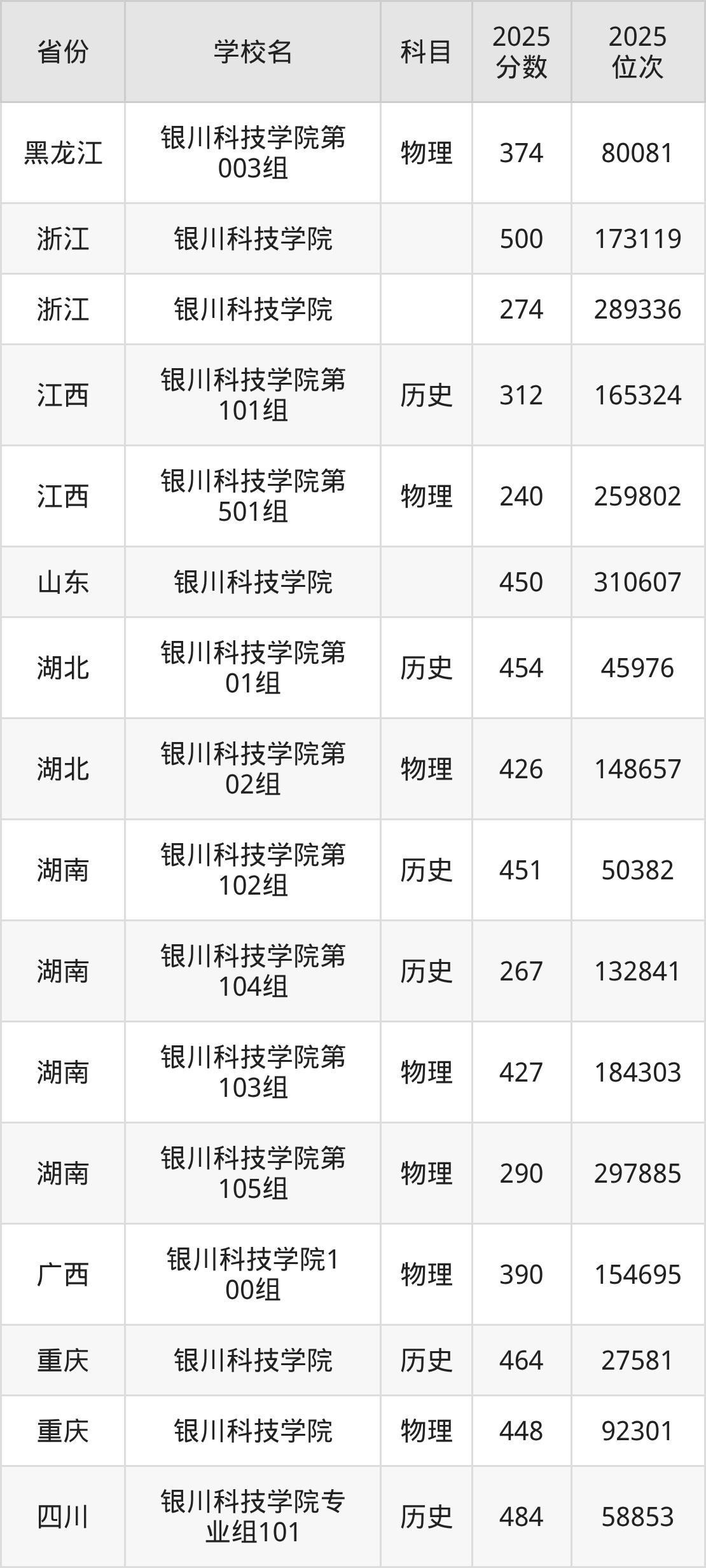 下面是银川科技学院2025年录取分数线各省汇总,一起来了解下吧。
