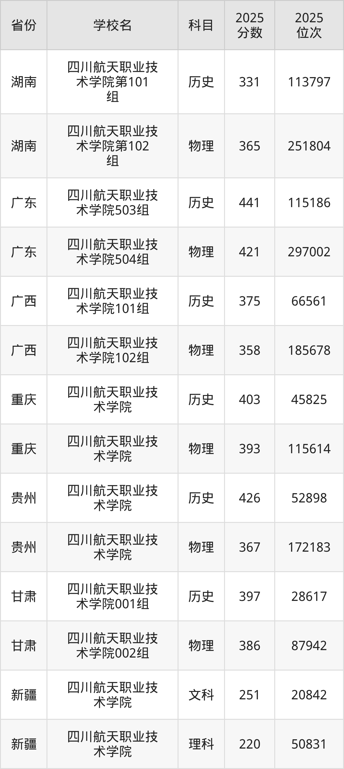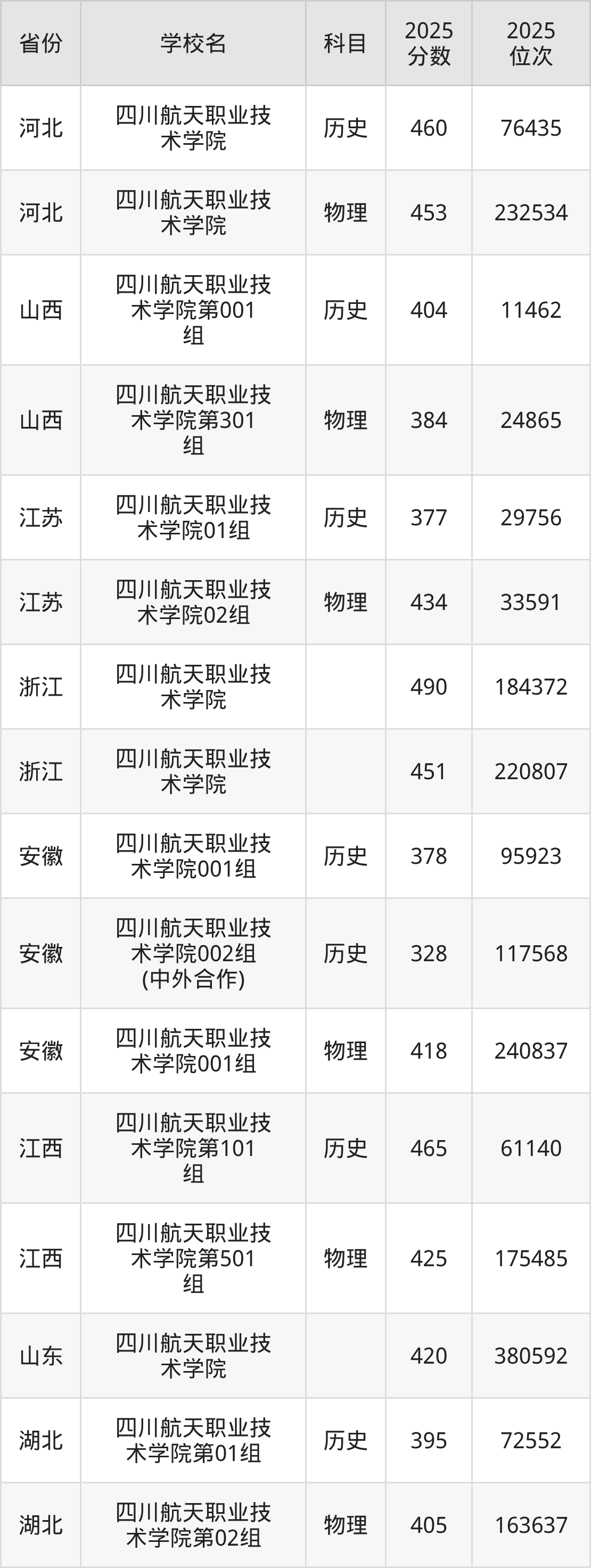 下面是四川航天职业技术学院2025年录取分数线各省汇总,一起来了解下吧。