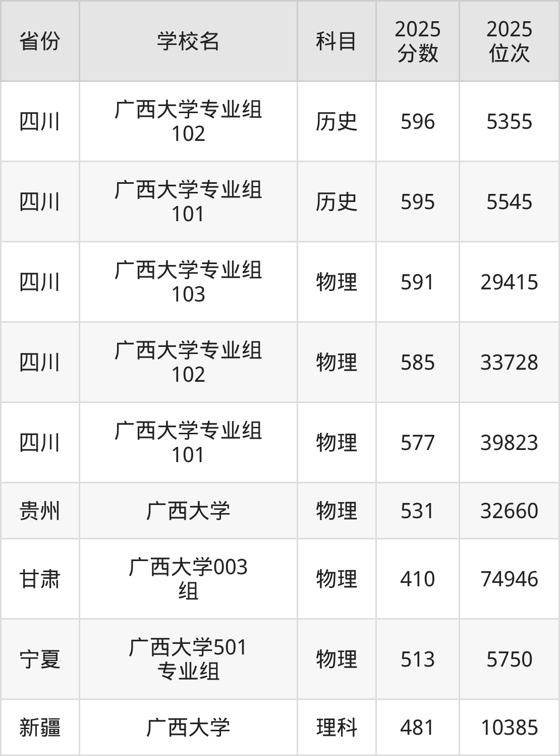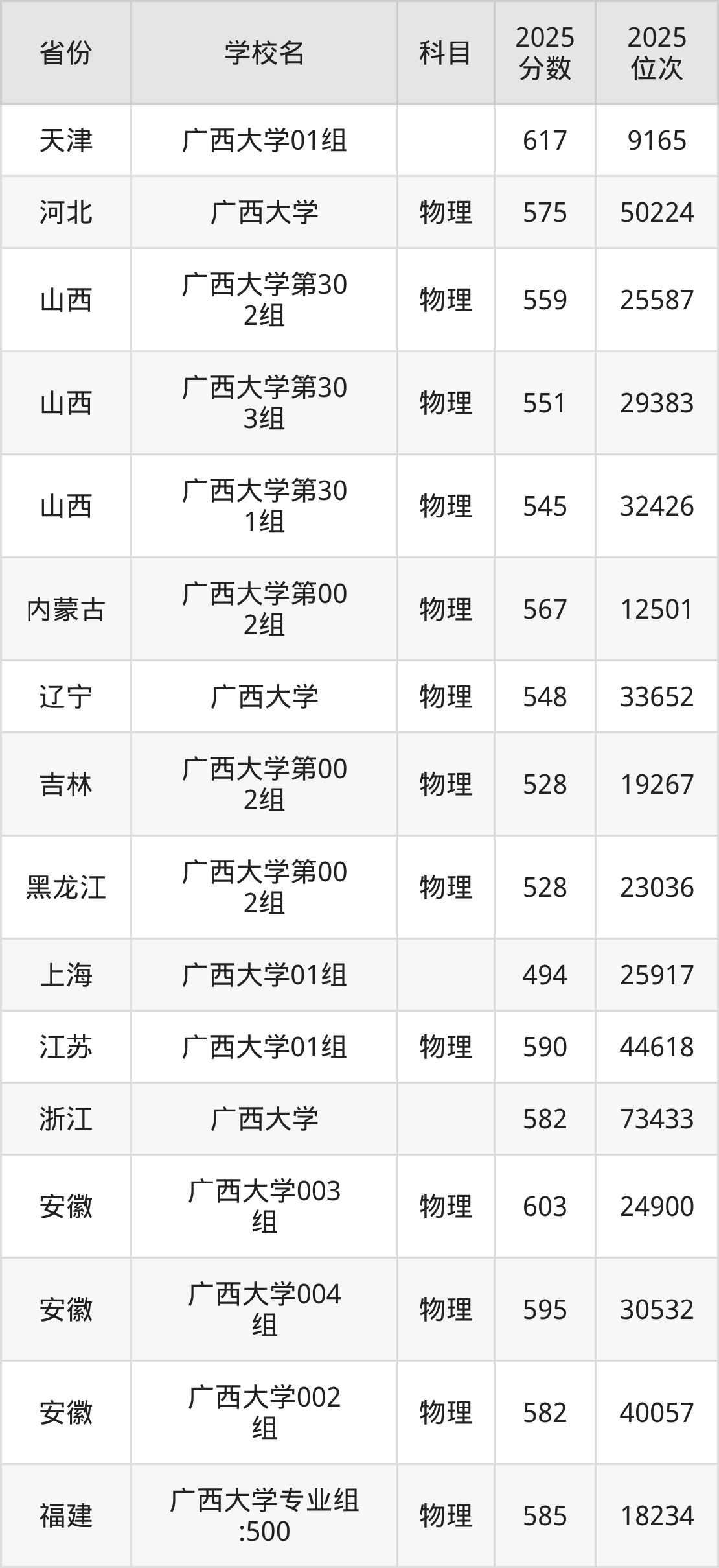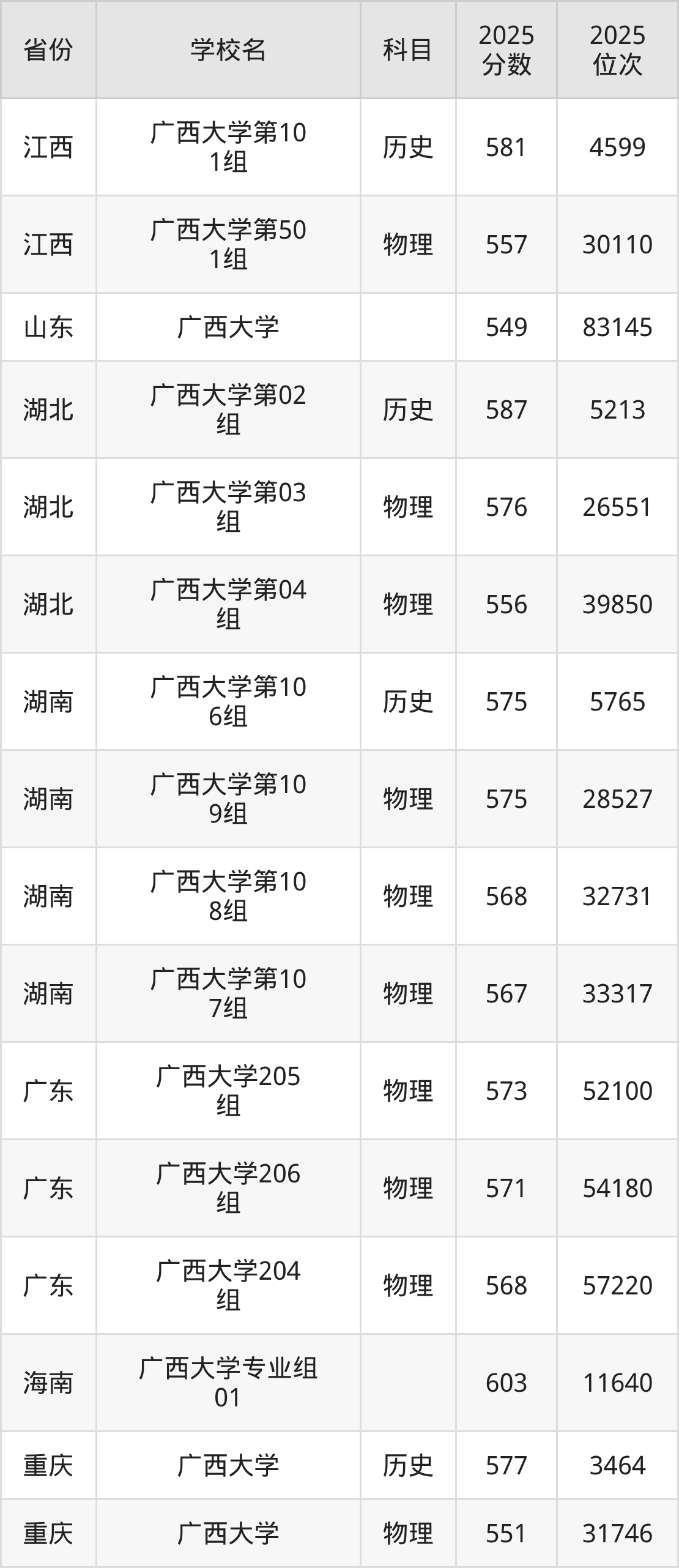 下面是广西大学2025年录取分数线各省汇总,一起来了解下吧。
