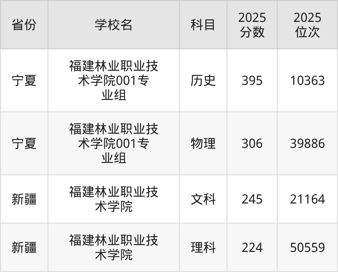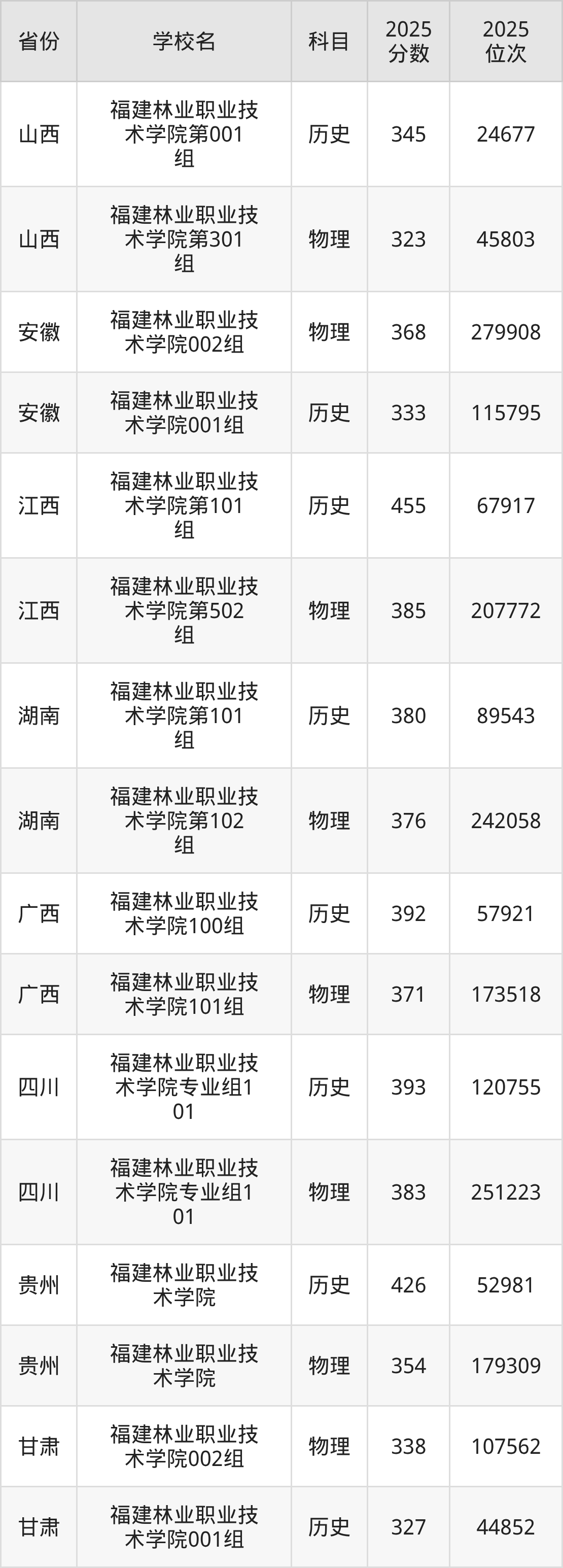 下面是福建林业职业技术学院2025年录取分数线各省汇总,一起来了解下吧。
