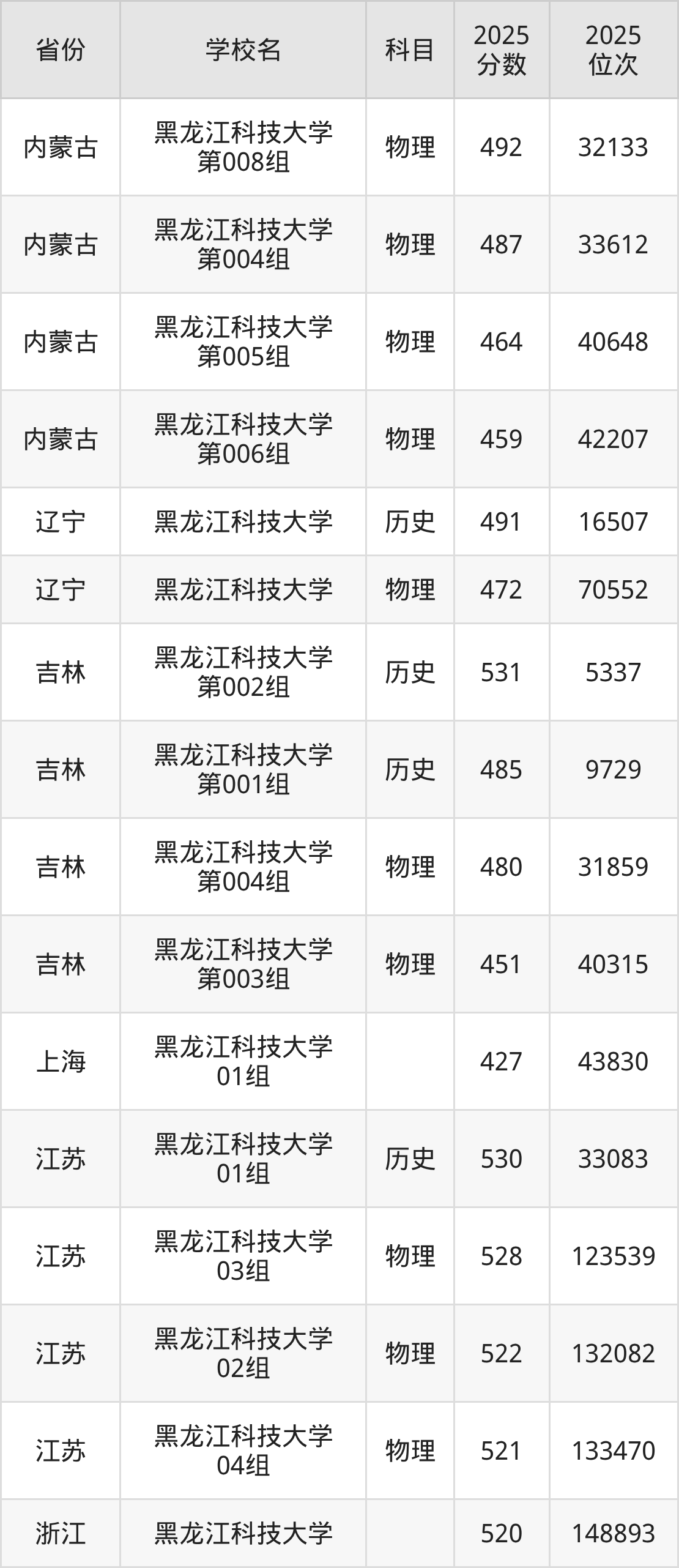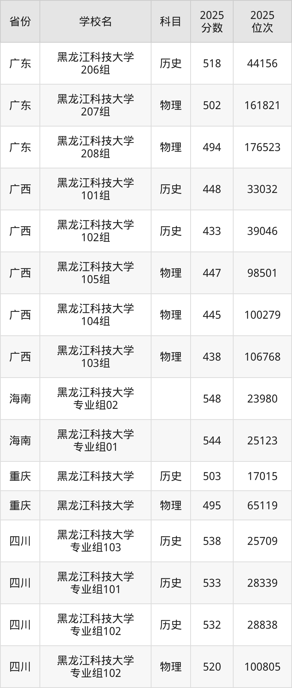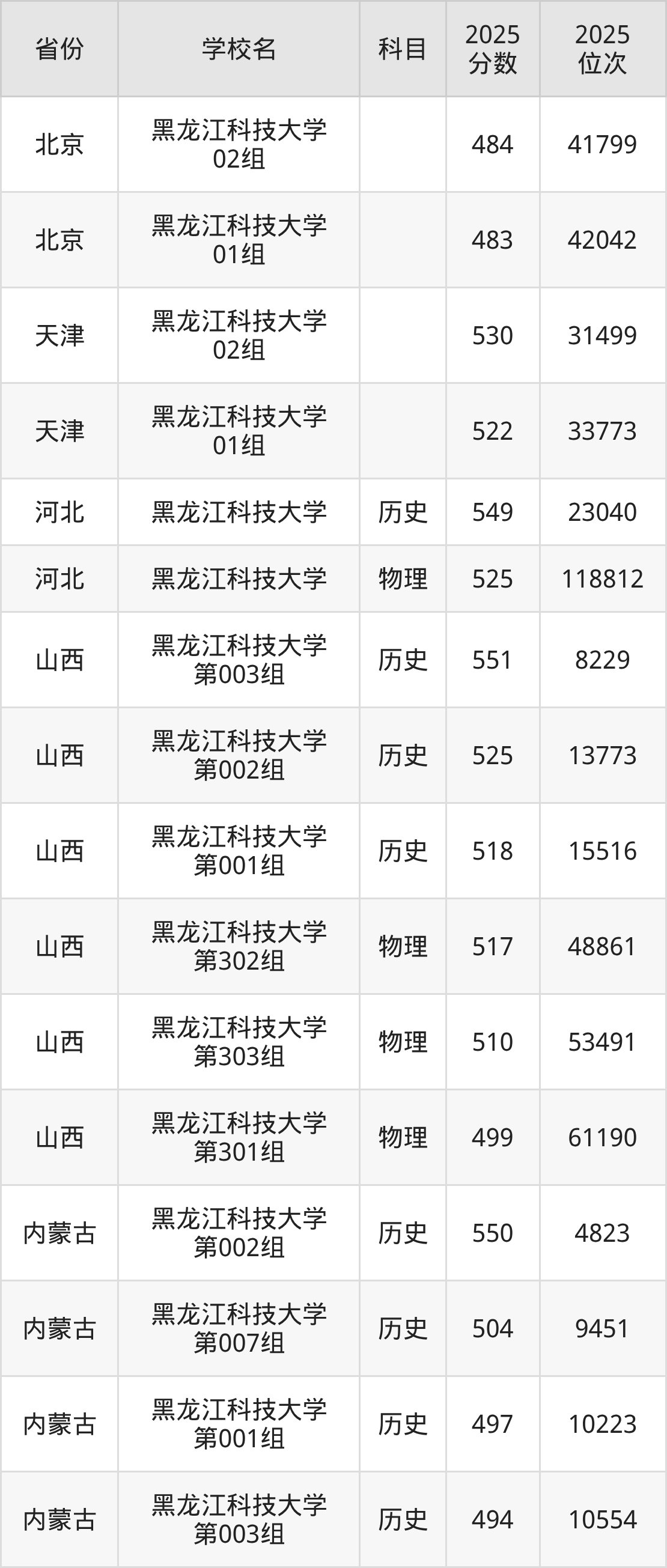 下面是黑龙江科技大学2025年录取分数线各省汇总,一起来了解下吧。
