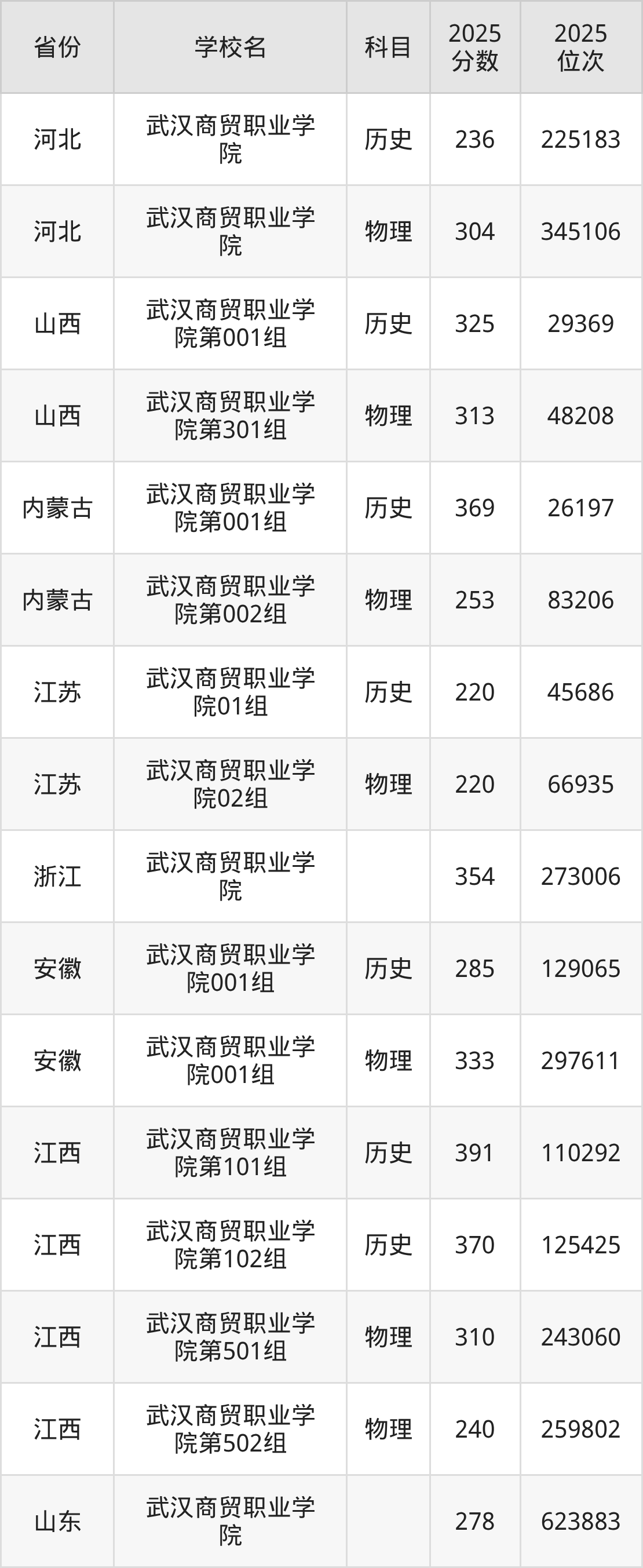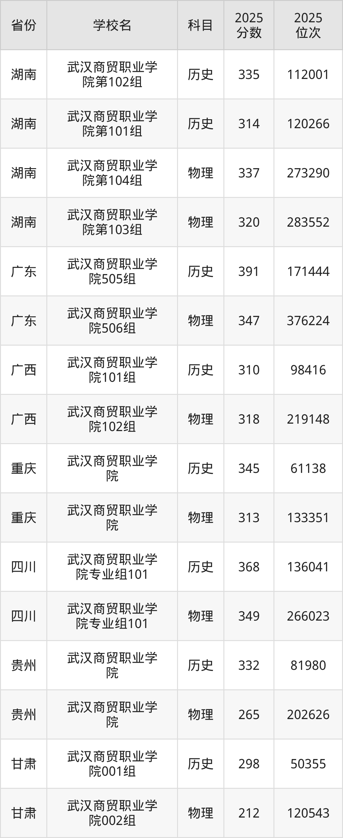 下面是武汉商贸职业学院2025年录取分数线各省汇总,一起来了解下吧。