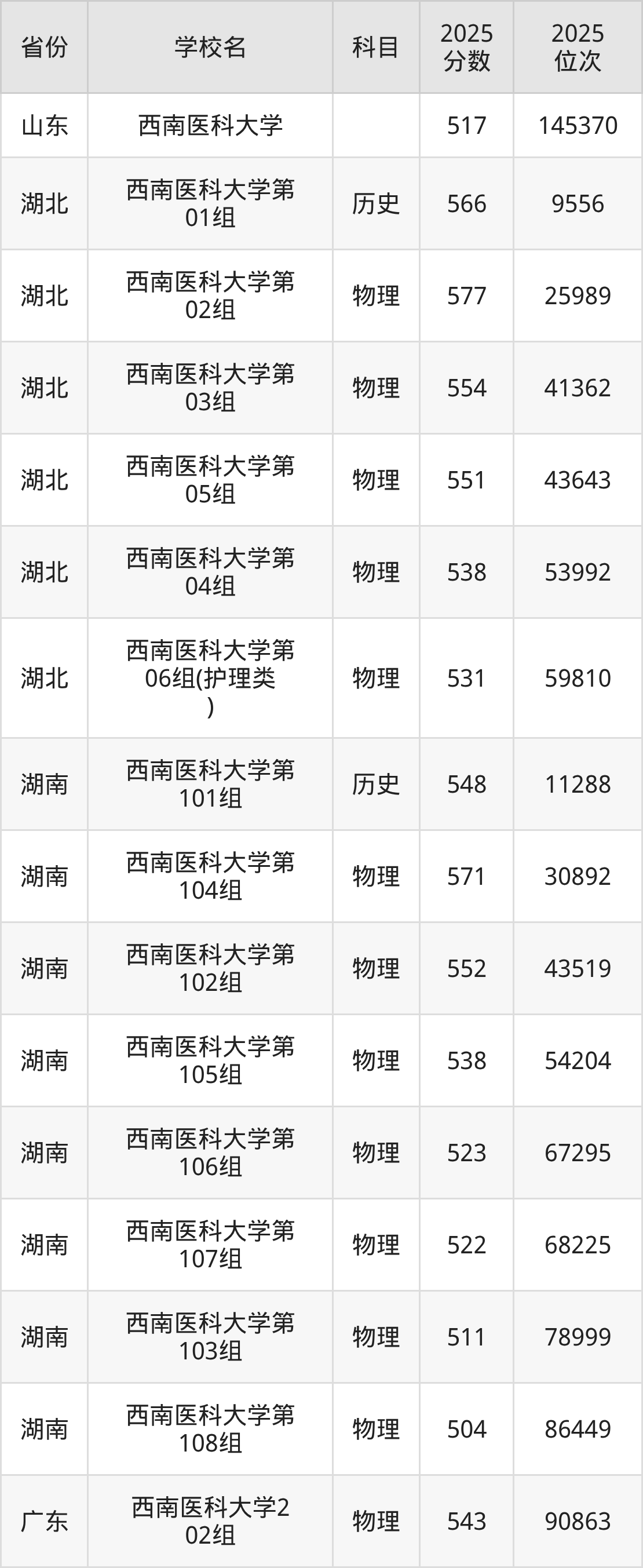 下面是西南医科大学2025年录取分数线各省汇总,一起来了解下吧。