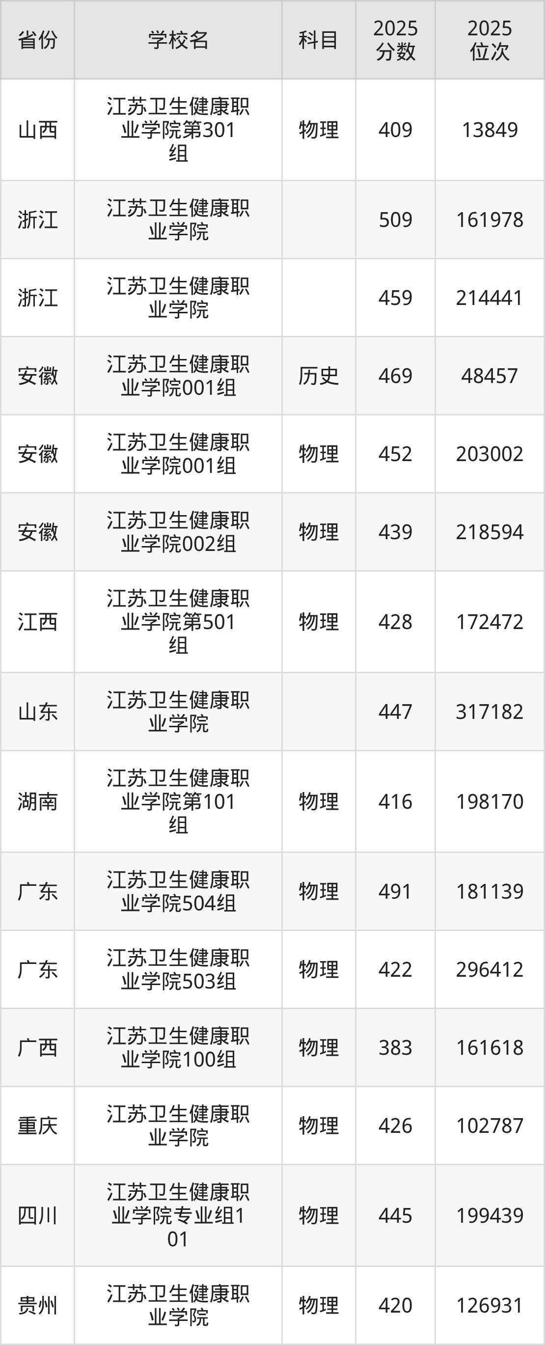 下面是江苏卫生健康职业学院2025年录取分数线各省汇总,一起来了解下吧。