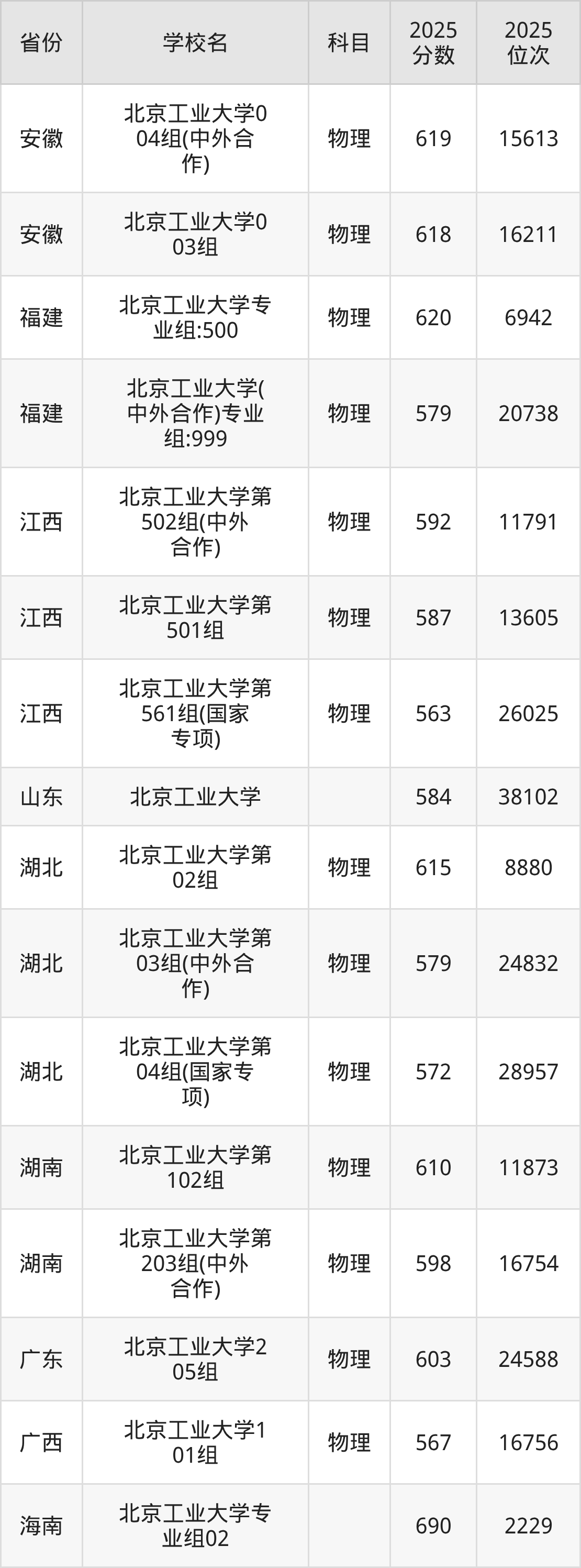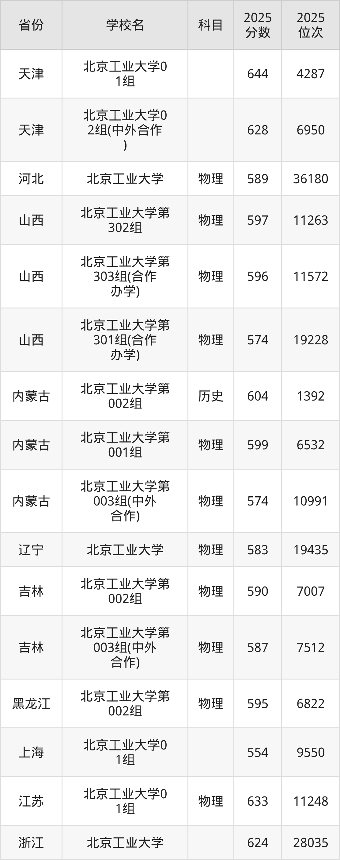 下面是北京工业大学2025年录取分数线各省汇总,一起来了解下吧。