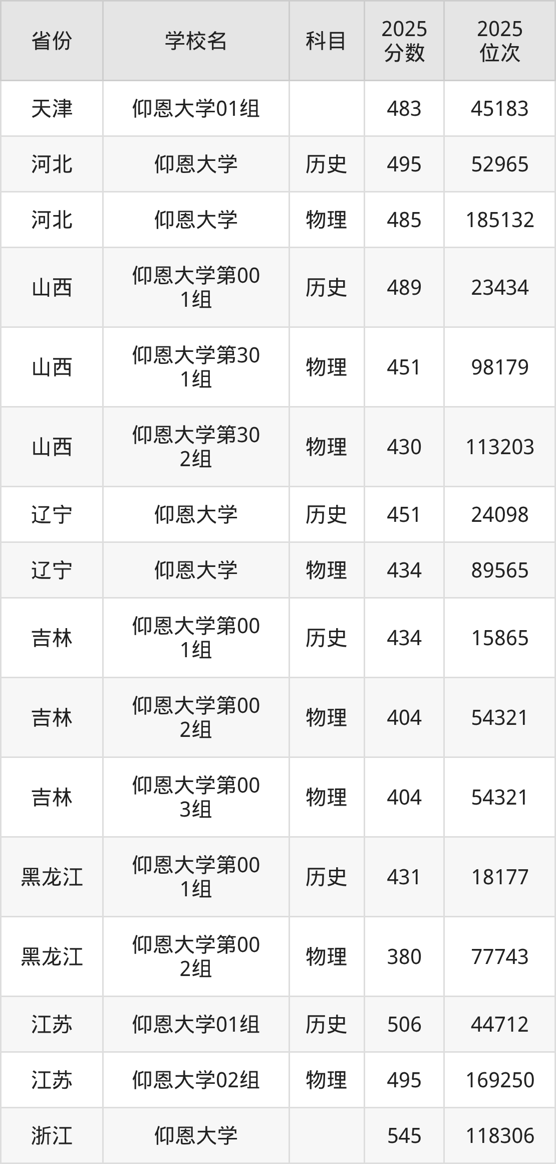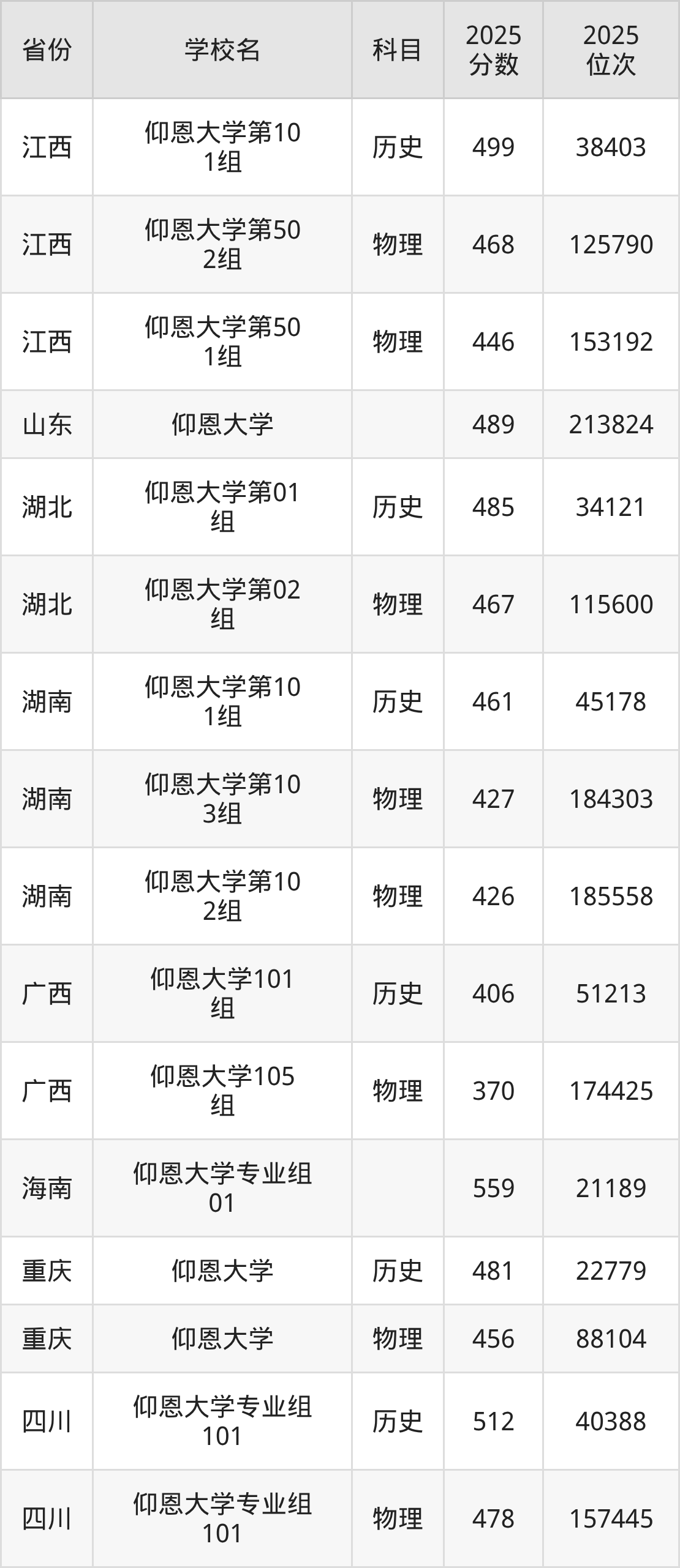 2025年仰恩大学历史类最低分462分(22810名)、物理类最低分466分(98212名)。
