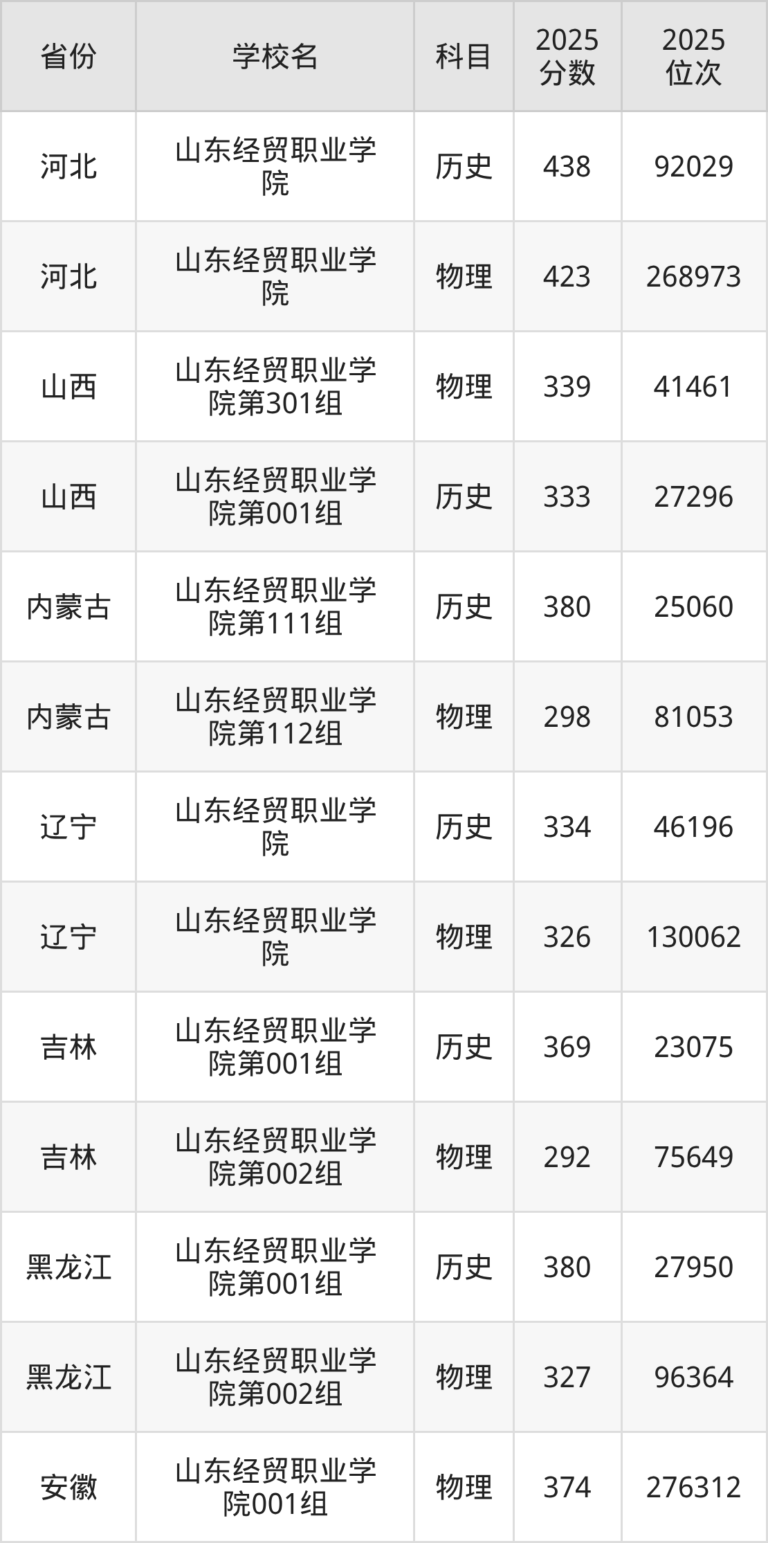 下面是山东经贸职业学院2025年录取分数线各省汇总,一起来了解下吧。