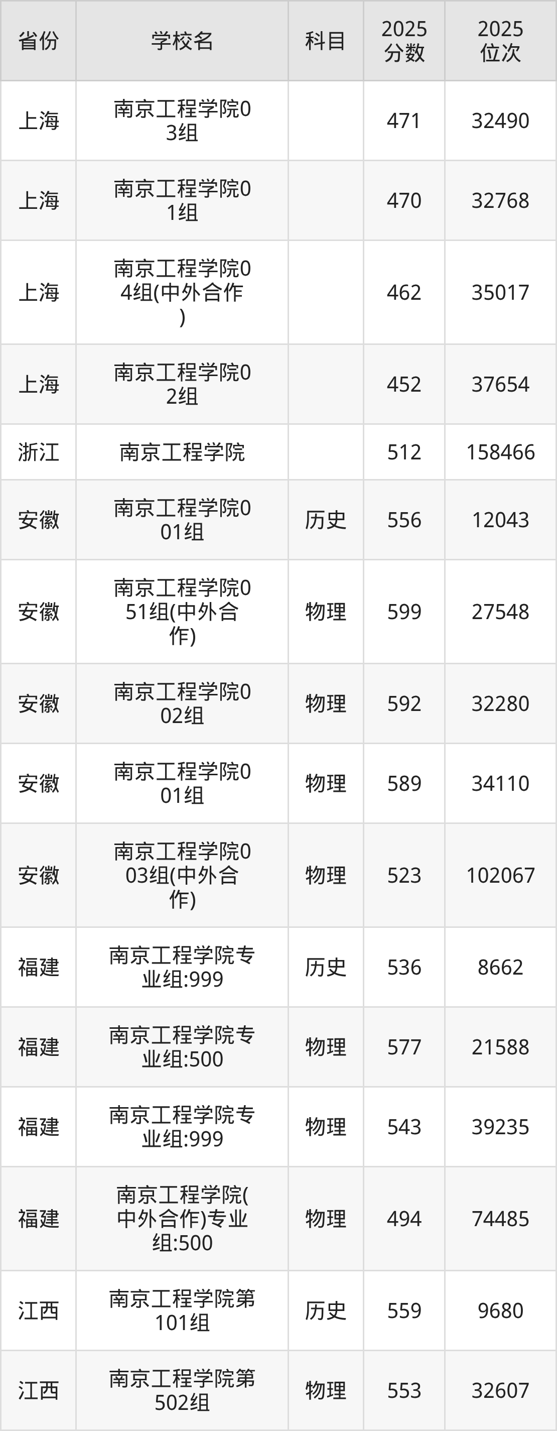 | 南京工程学院0 2组(联合培养 项目) | 历史 | 543 | 26982 |