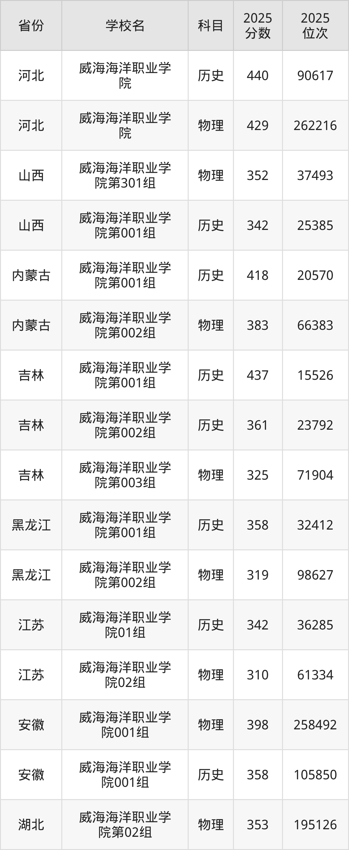 下面是威海海洋职业学院2025年录取分数线各省汇总,一起来了解下吧。
