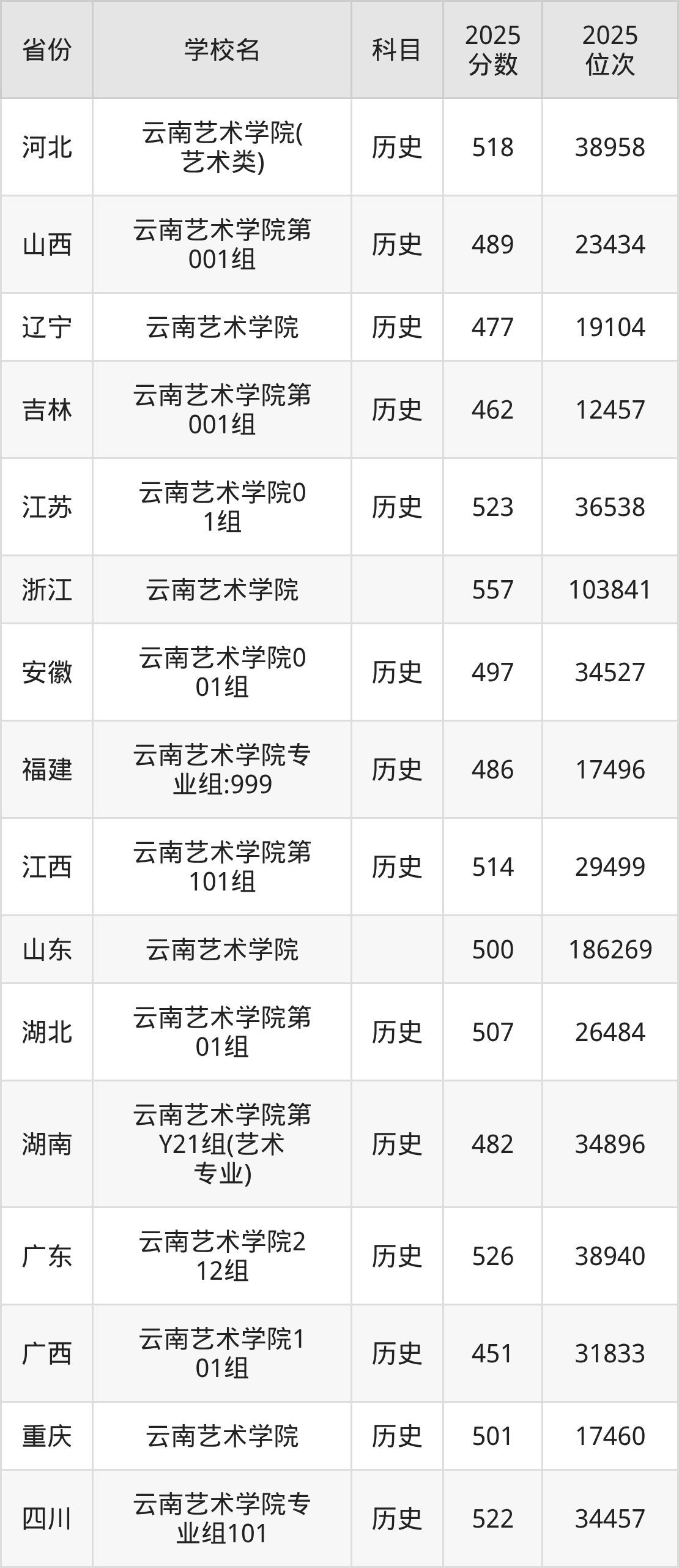 2025年云南艺术学院历史类最低分507分(26484名)。