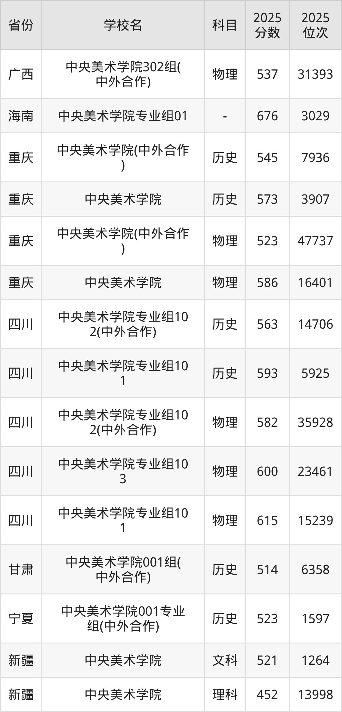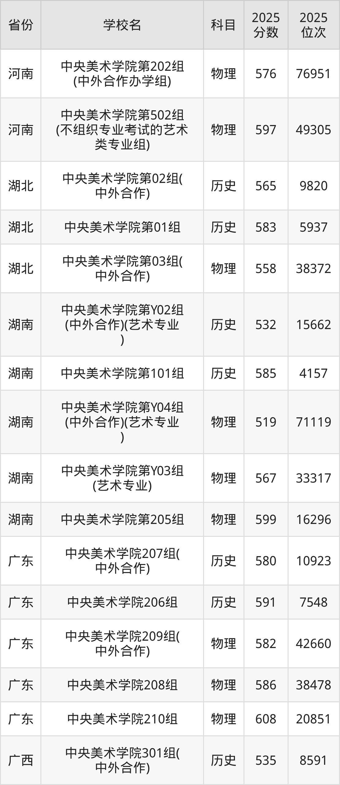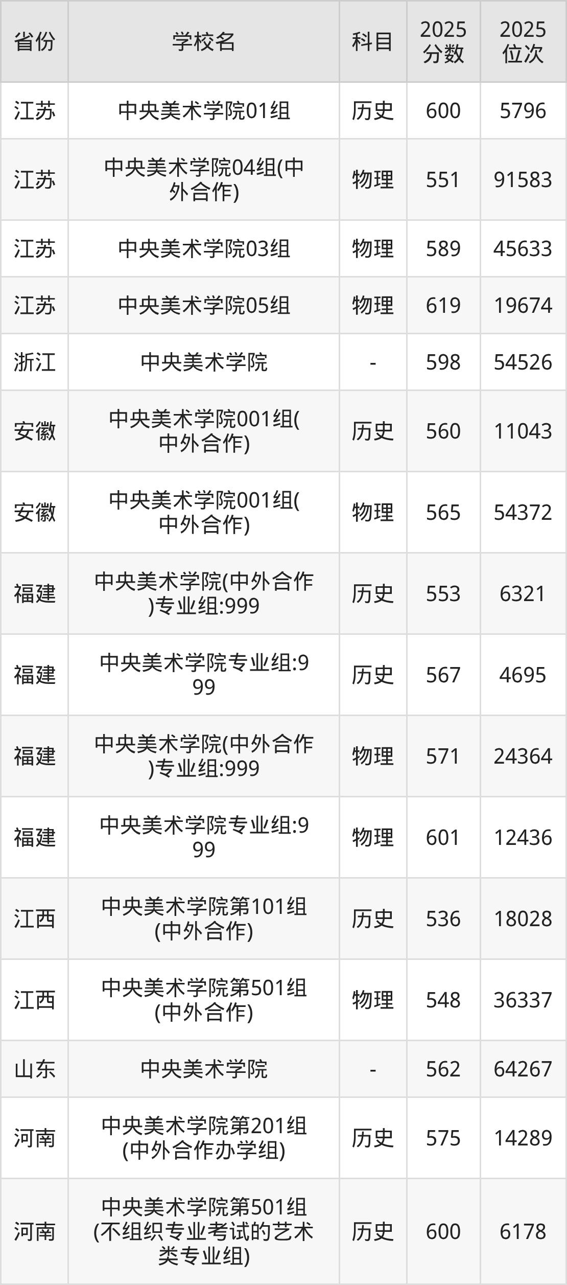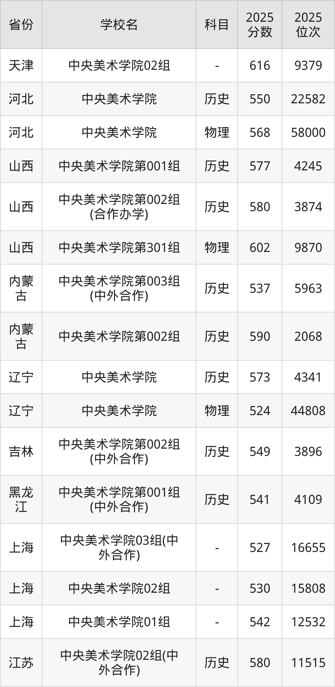 下面是中央美术学院2025年录取分数线各省汇总,一起来了解下吧。