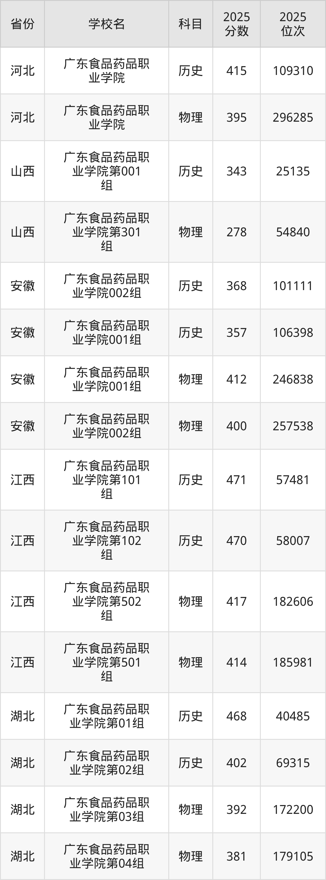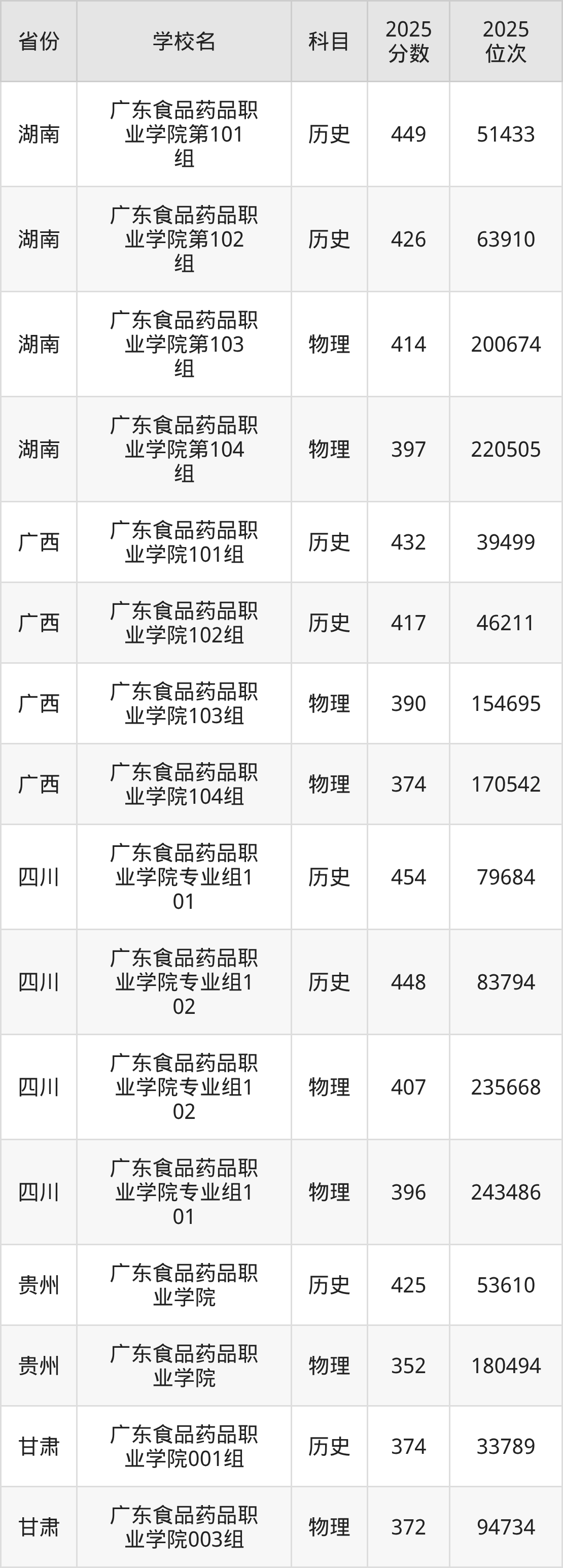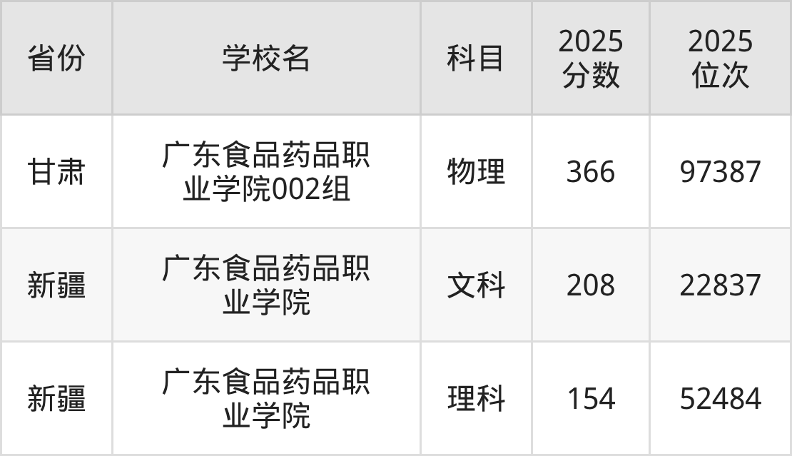 下面是广东食品药品职业学院2025年录取分数线各省汇总,一起来了解下吧。