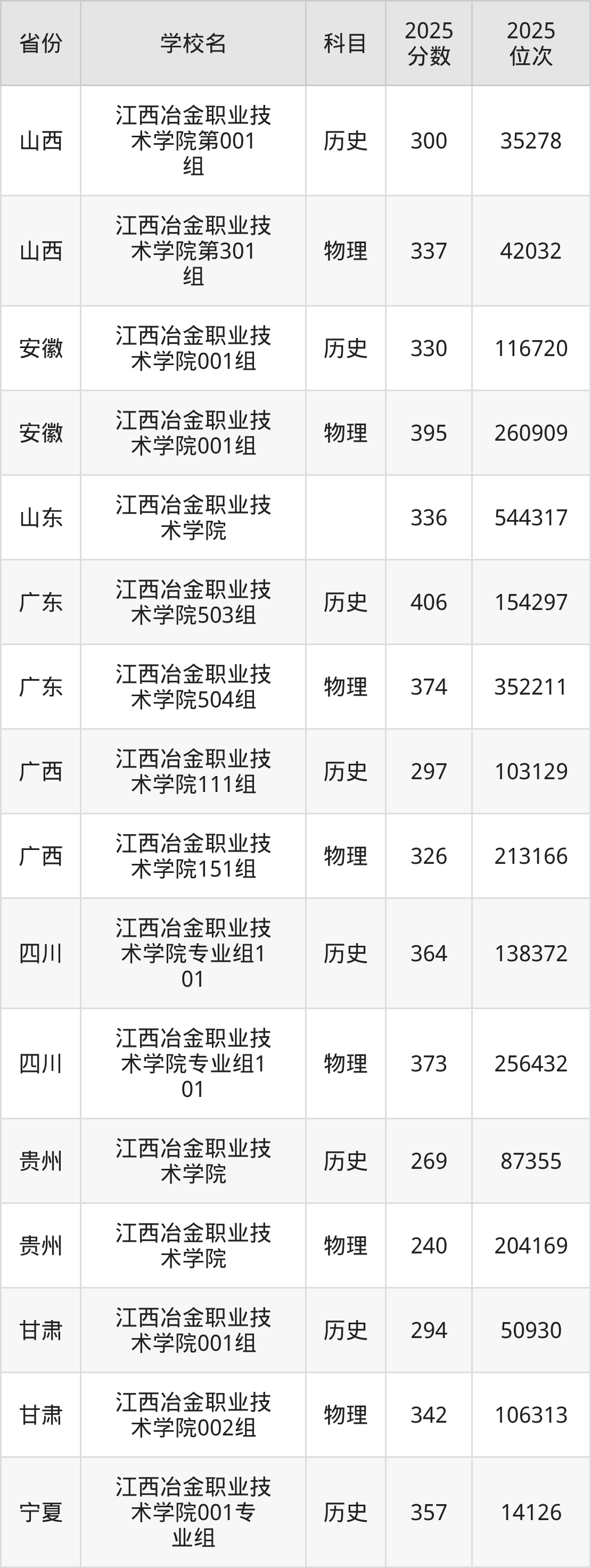 下面是江西冶金职业技术学院2025年录取分数线各省汇总,一起来了解下吧。