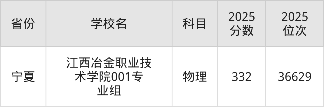 2026年江西冶金职业技术学院录取分数线预计在330分及以上,在各省录取最低分存在一定差异,如:2025年江西冶金职业技术学院在山西录取最低历史类300分、物理类337分,在山东录取最低分是336分,在广东录取最低历史类406分、物理类374分。