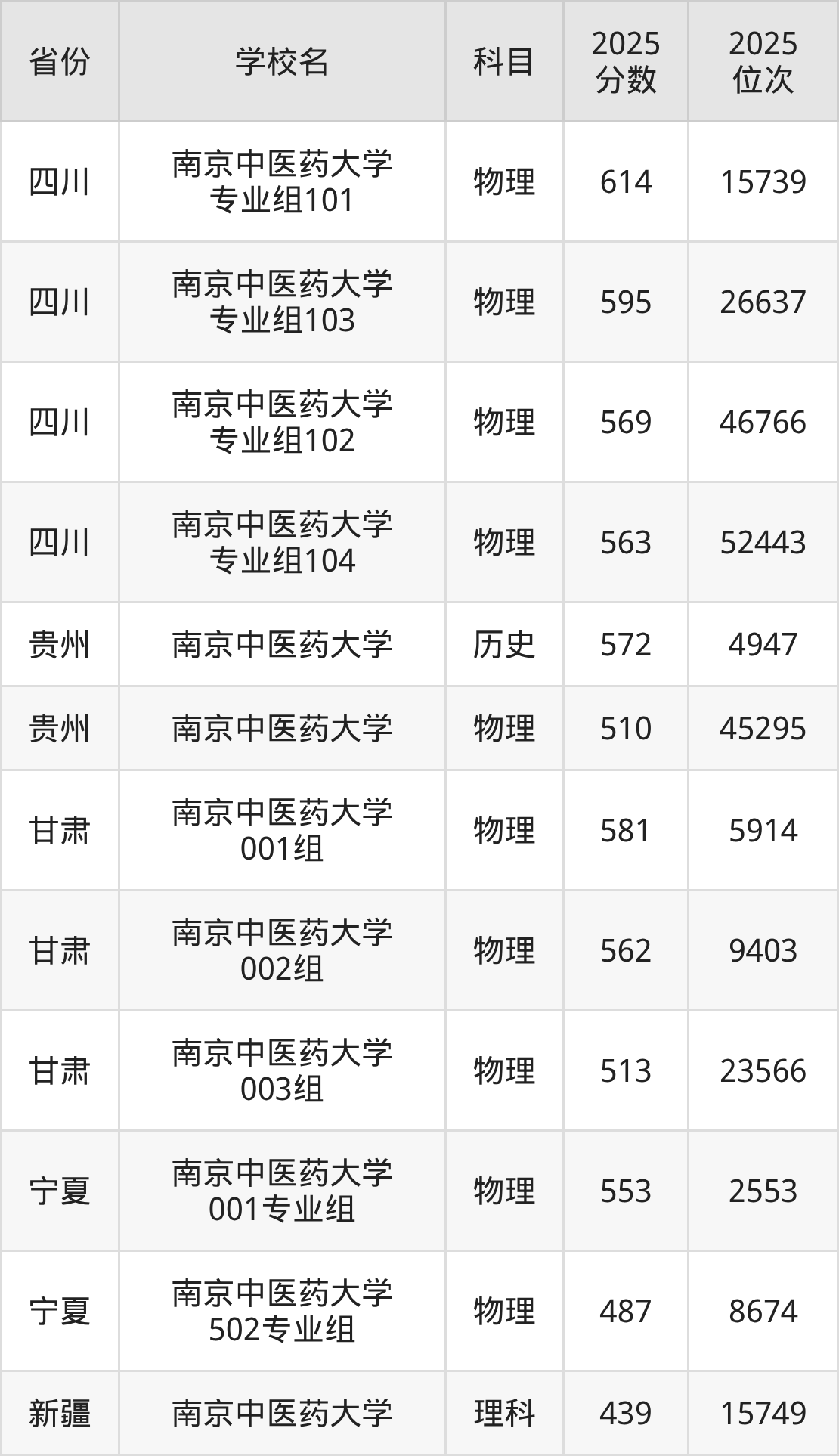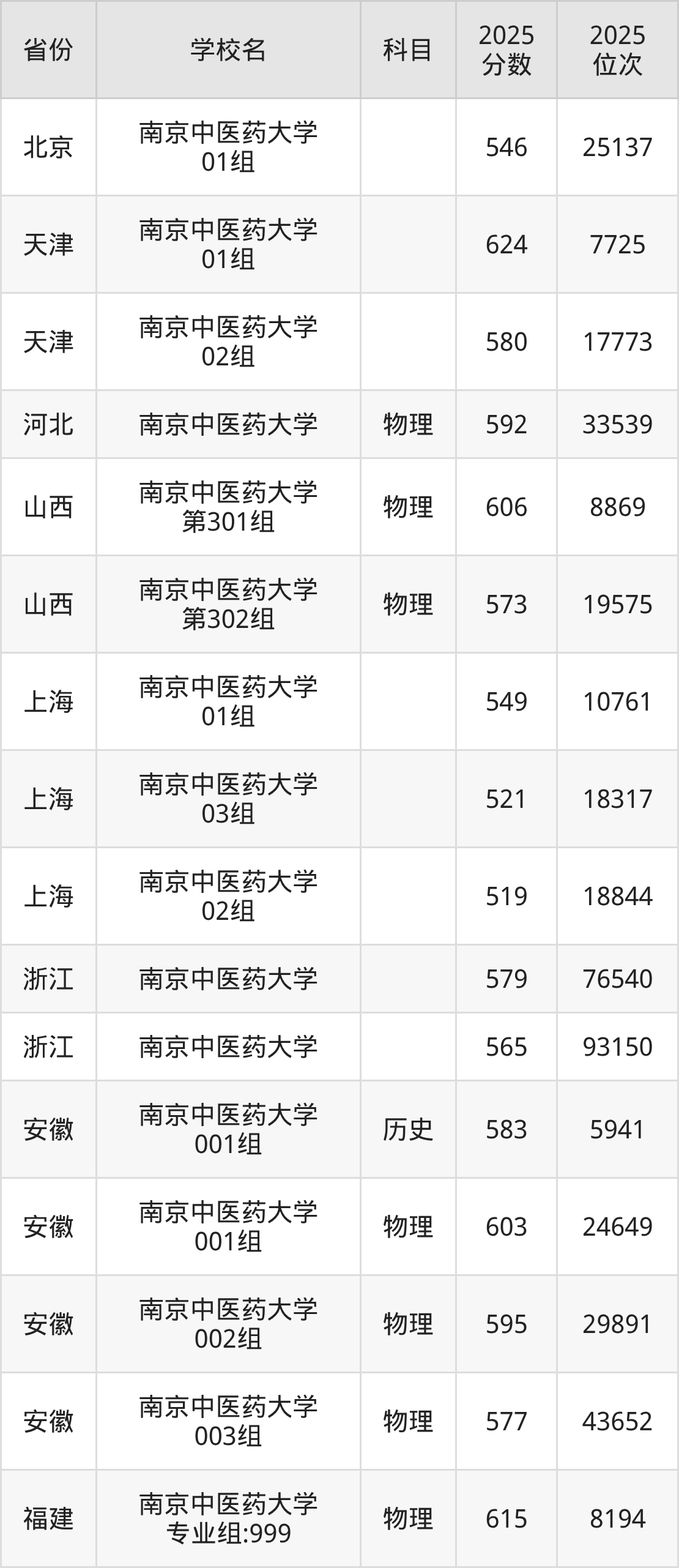 下面是南京中医药大学2025年录取分数线各省汇总,一起来了解下吧。