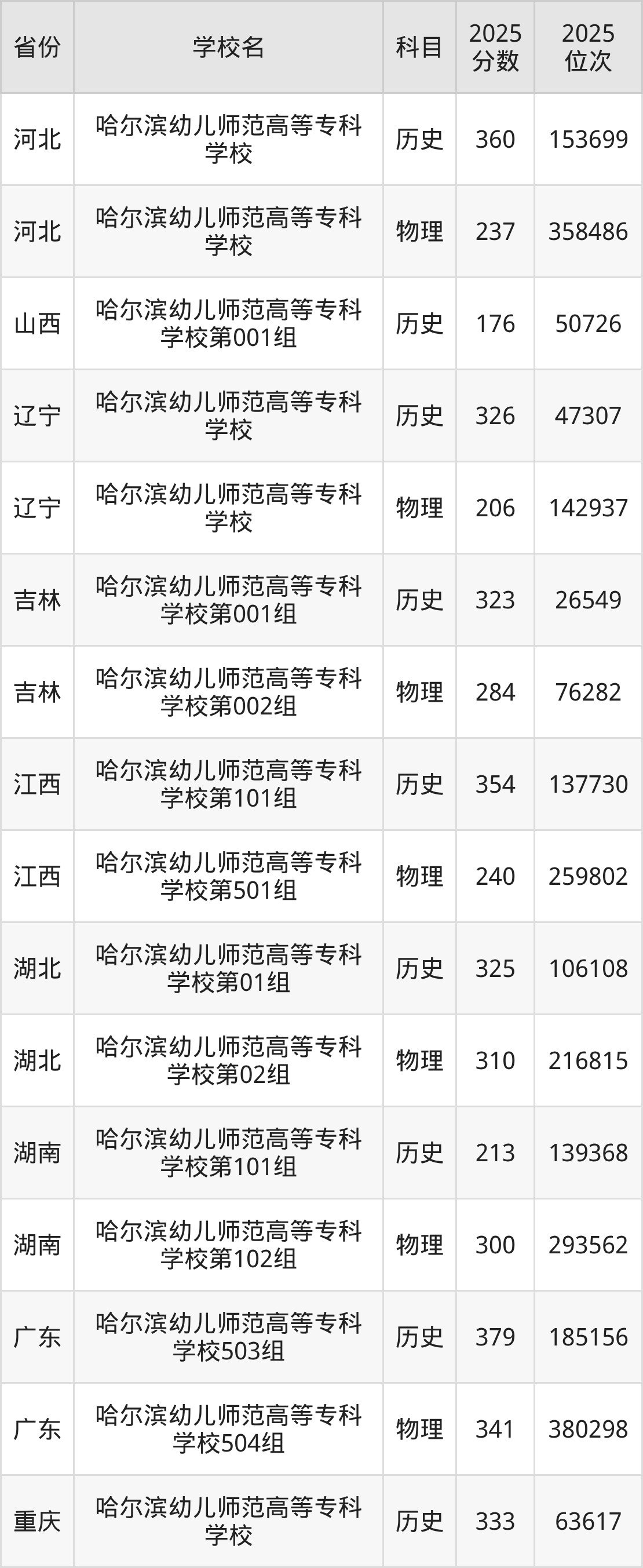 | 哈尔滨幼儿师范 高等专科学校第 003组 | 历史 | 263 | 49513 |