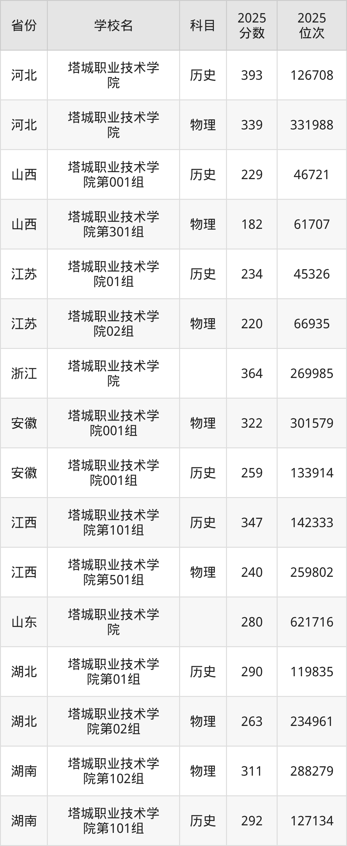 下面是塔城职业技术学院2025年录取分数线各省汇总,一起来了解下吧。