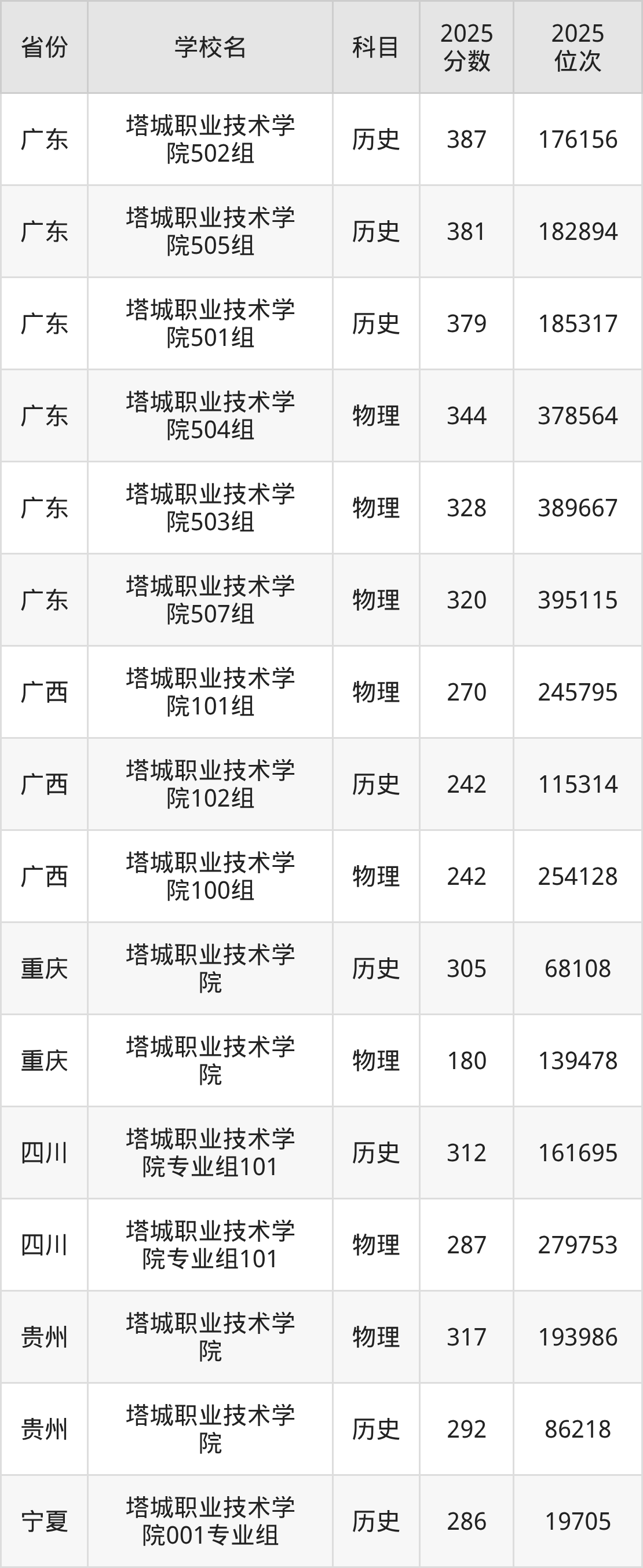 2025年塔城职业技术学院文科最低分205分(22931名)、理科最低分186分(52213名)。