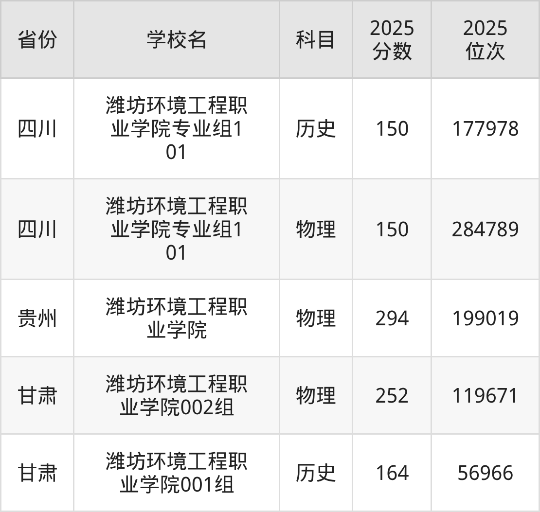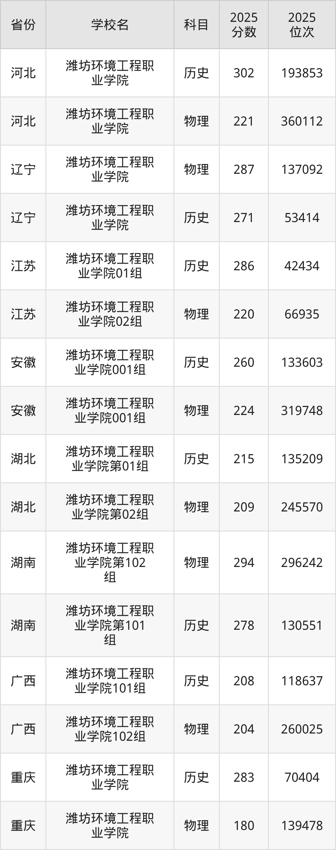 下面是潍坊环境工程职业学院2025年录取分数线各省汇总,一起来了解下吧。