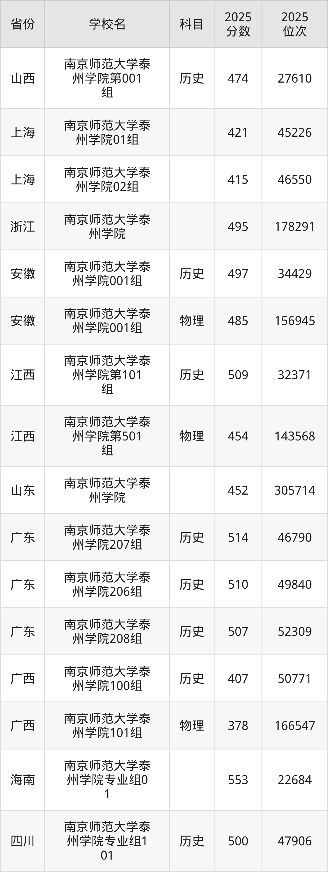 下面是南京师范大学泰州学院2025年录取分数线各省汇总,一起来了解下吧。
