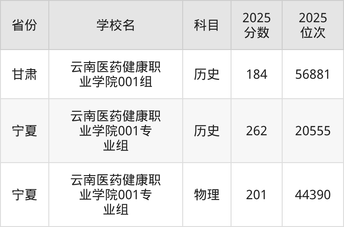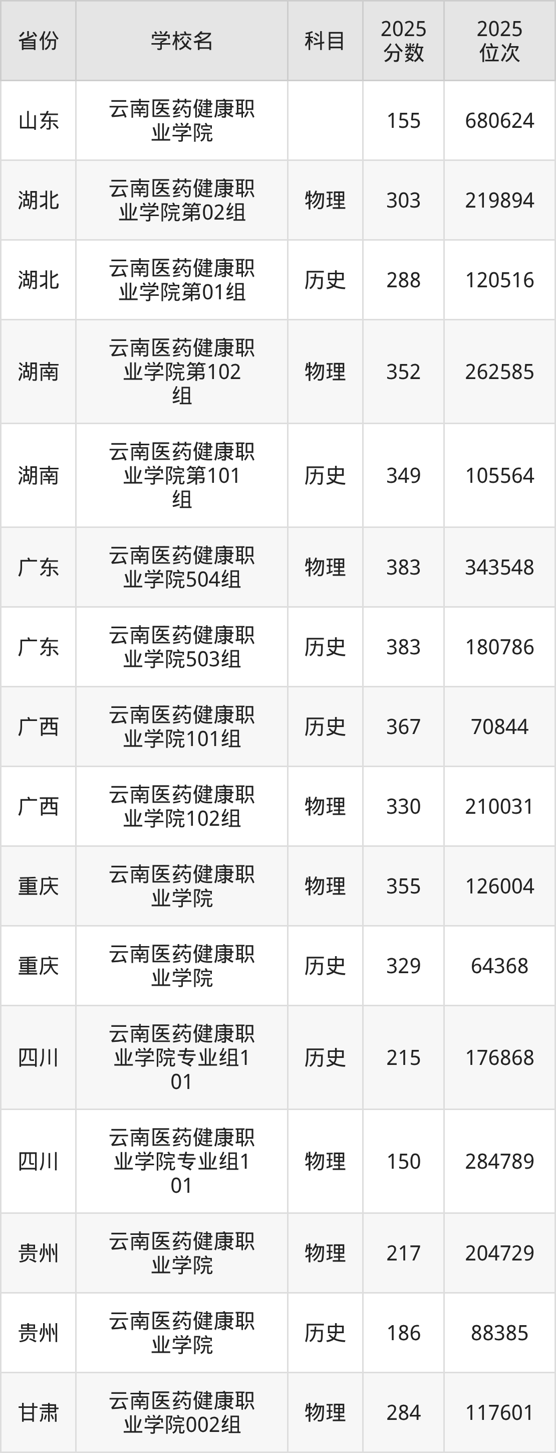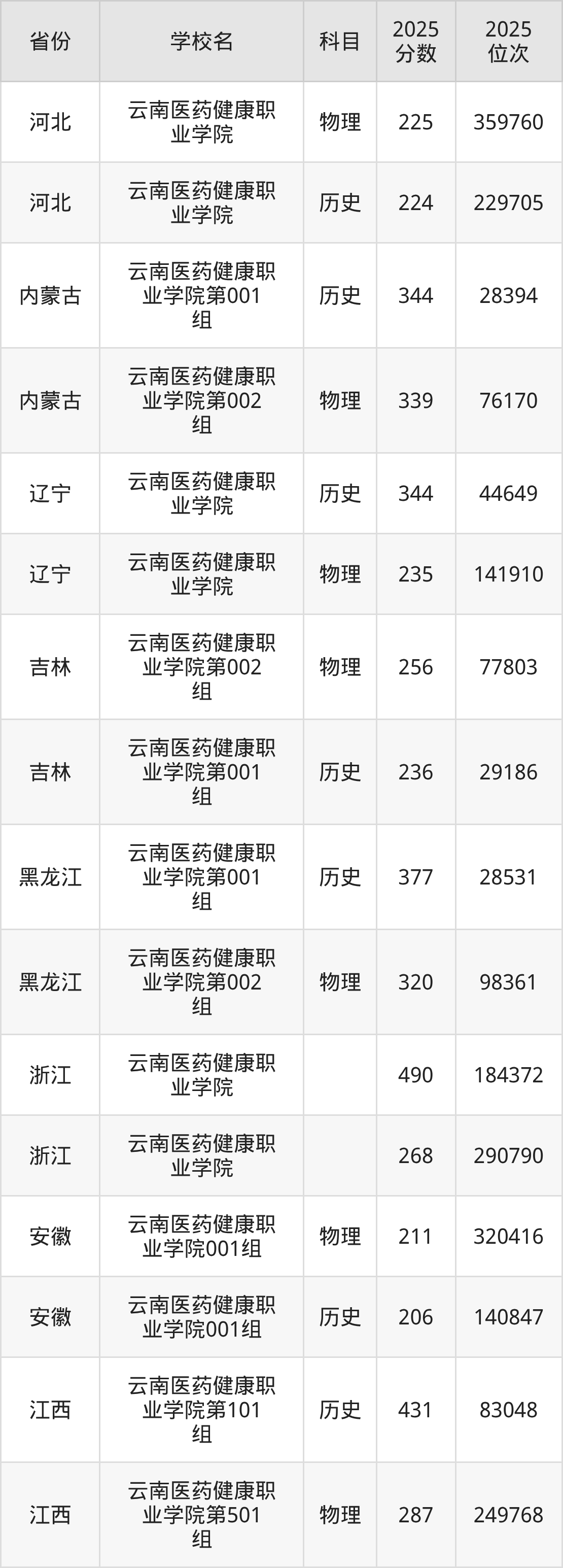 下面是云南医药健康职业学院2025年录取分数线各省汇总,一起来了解下吧。