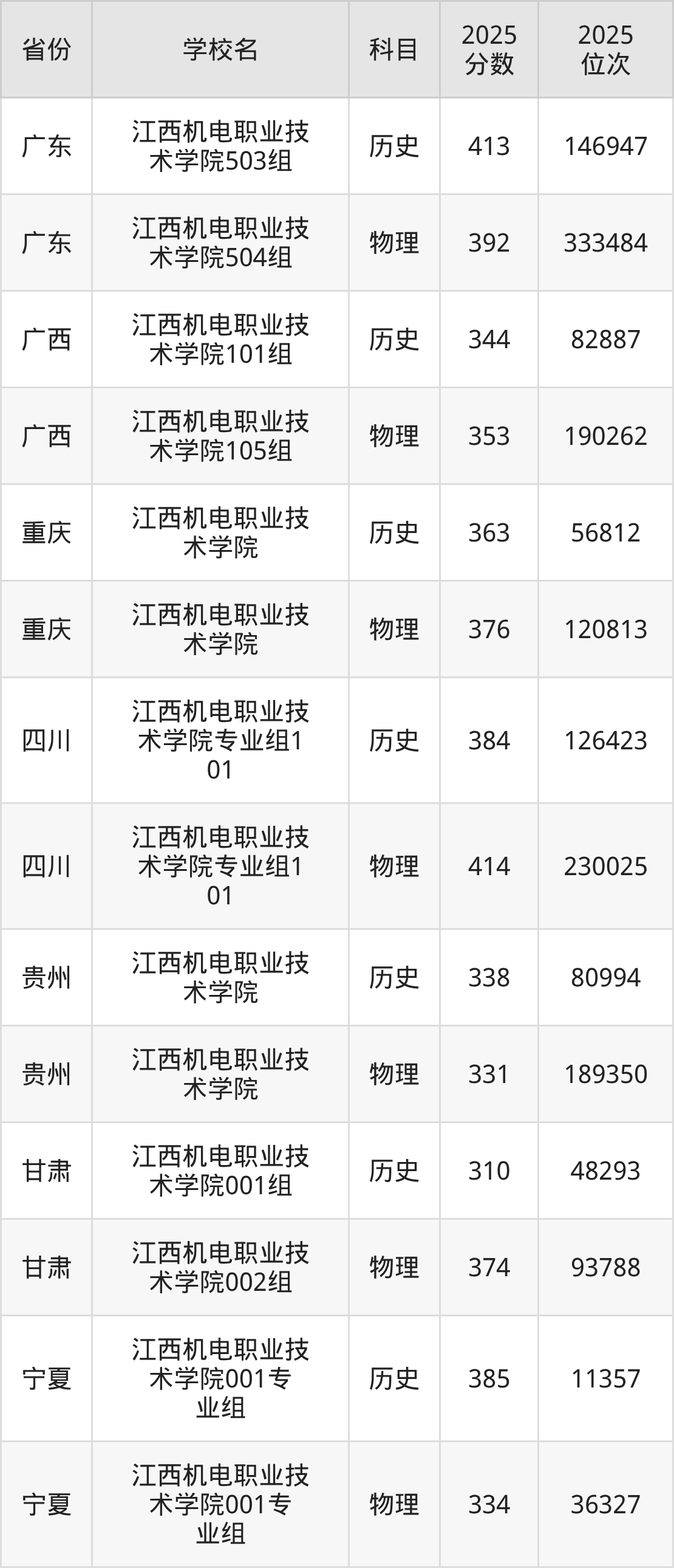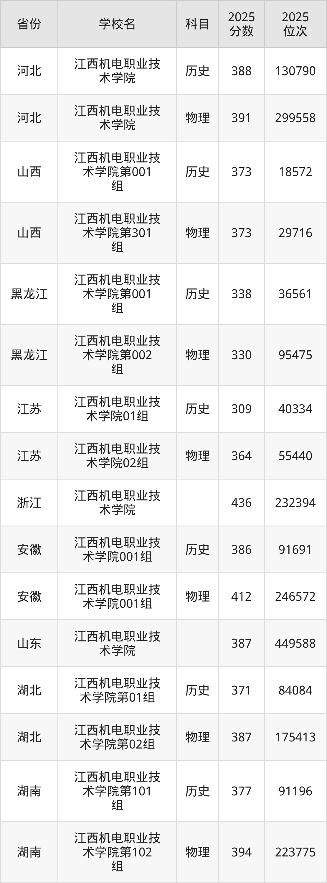 下面是江西机电职业技术学院2025年录取分数线各省汇总,一起来了解下吧。