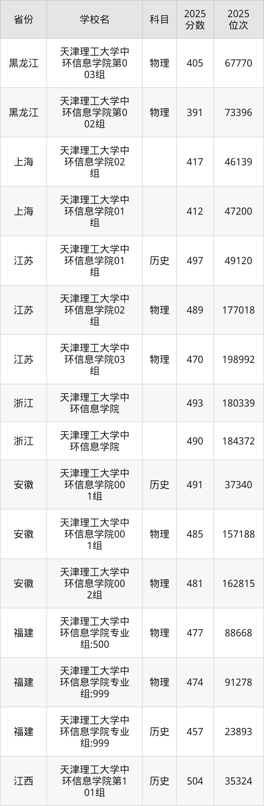 下面是天津理工大学中环信息学院2025年录取分数线各省汇总,一起来了解下吧。