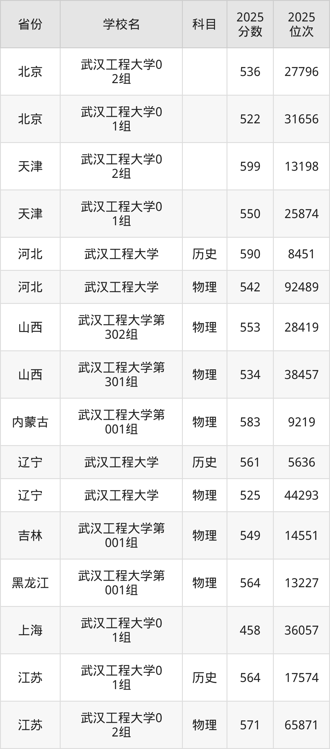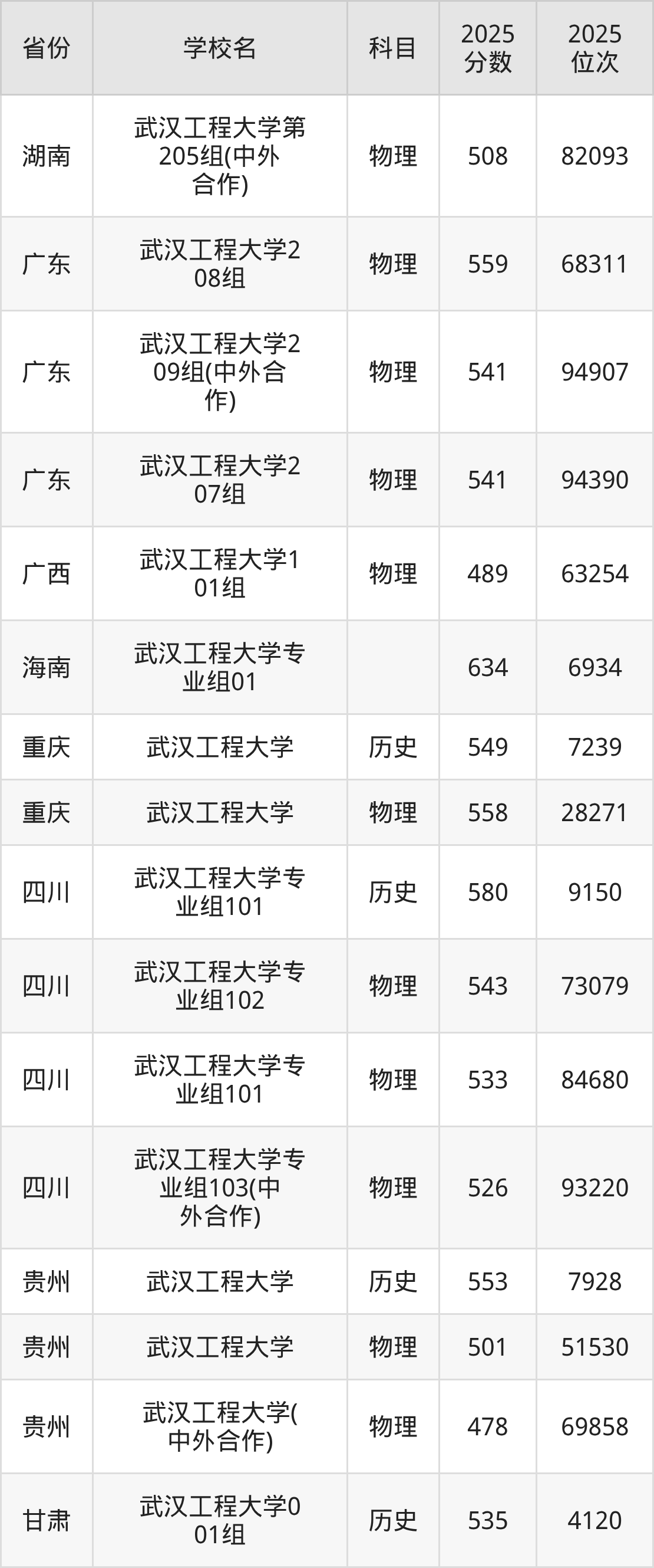 下面是武汉工程大学2025年录取分数线各省汇总,一起来了解下吧。