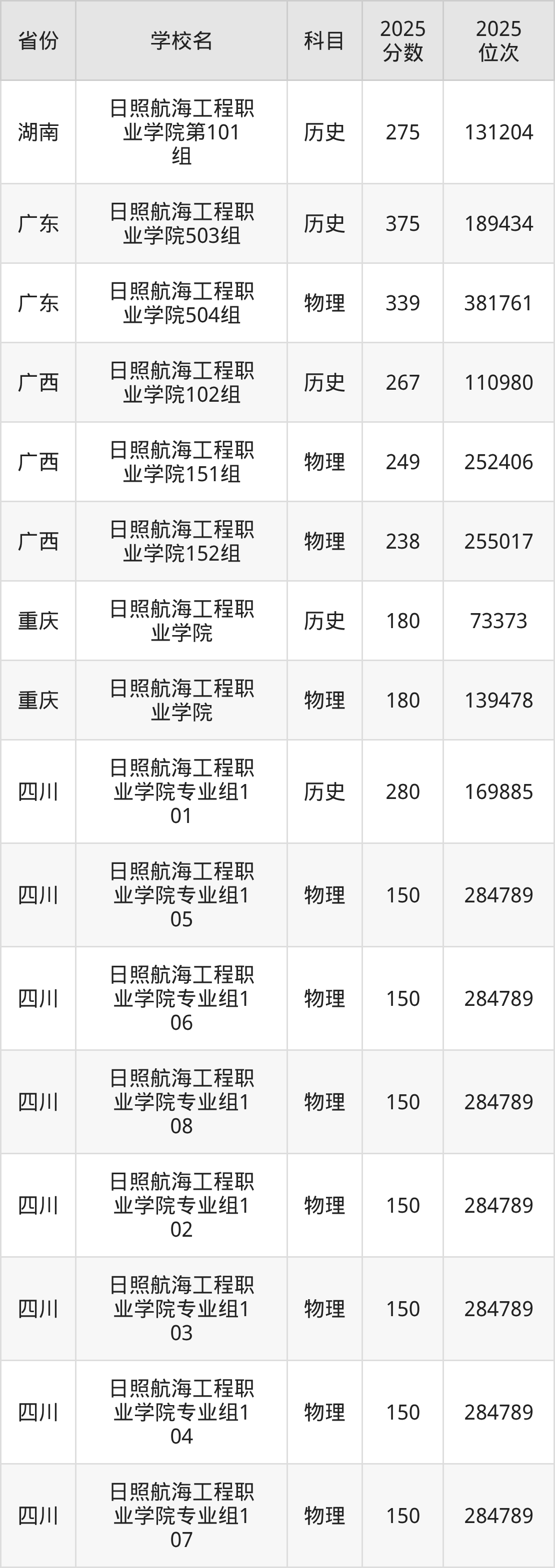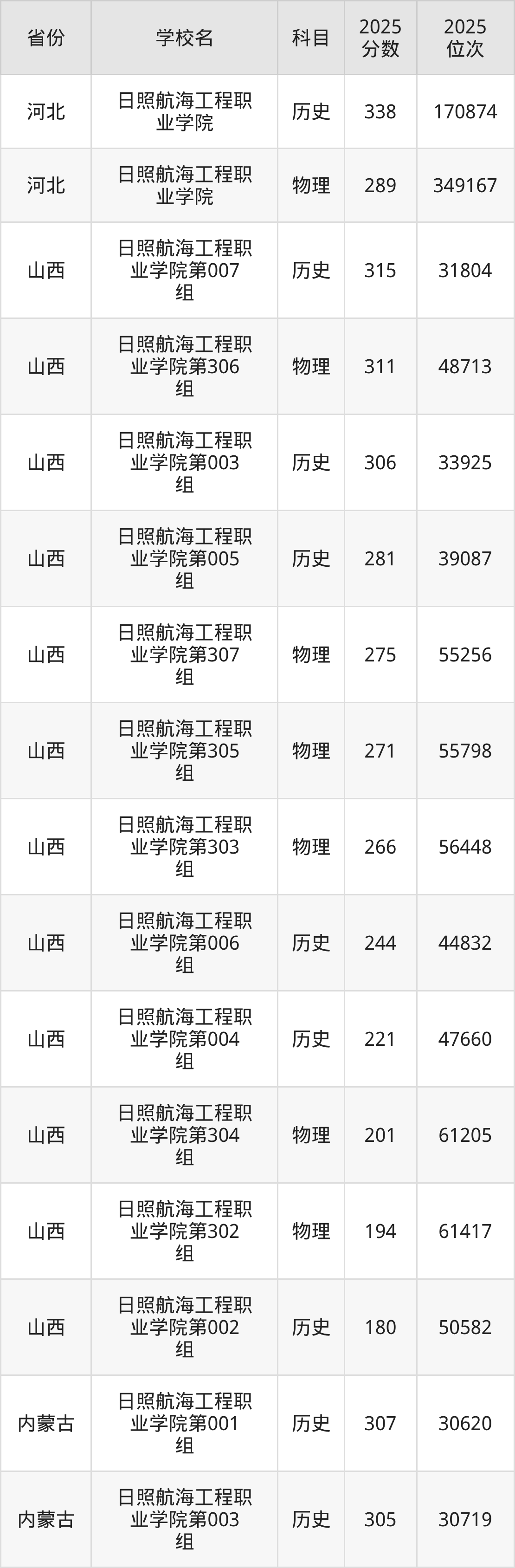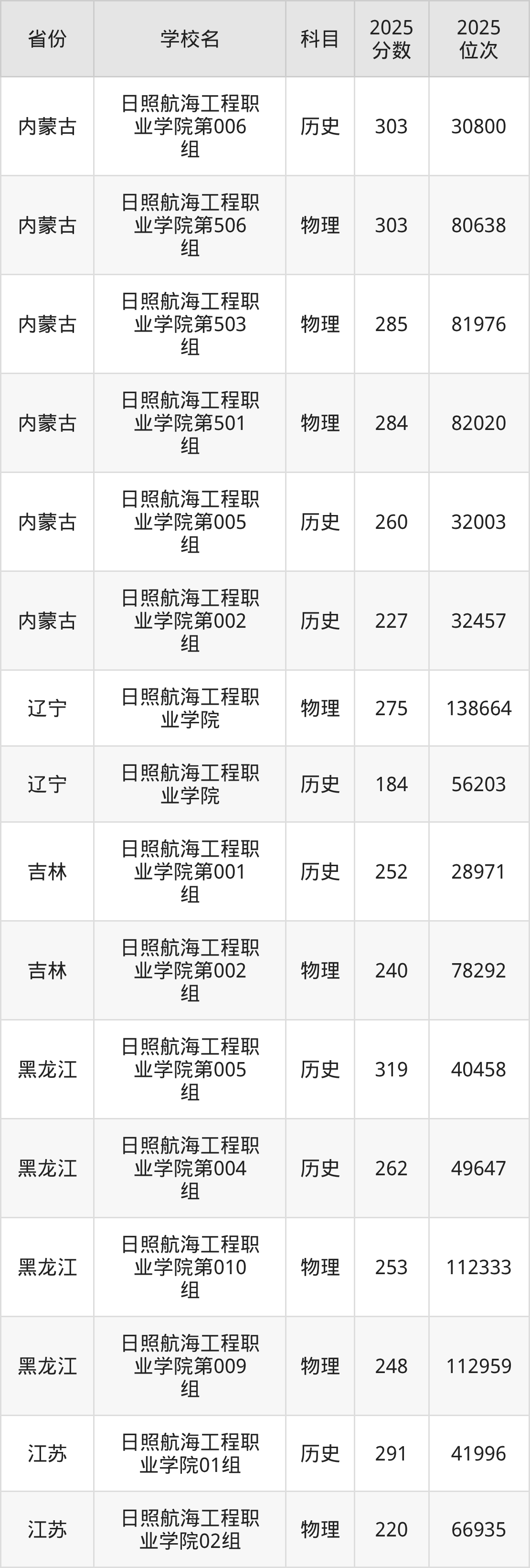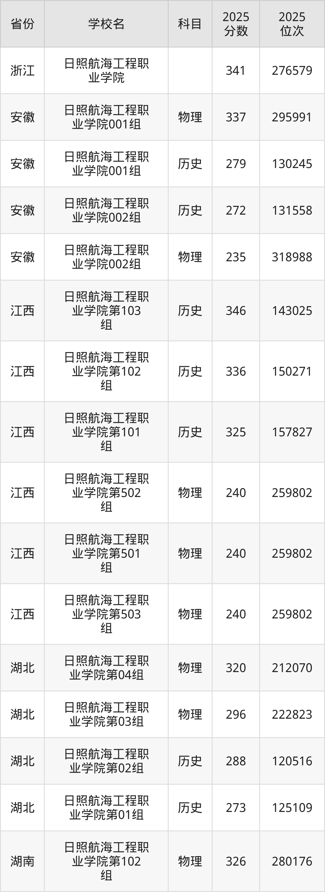 下面是日照航海工程职业学院2025年录取分数线各省汇总,一起来了解下吧。