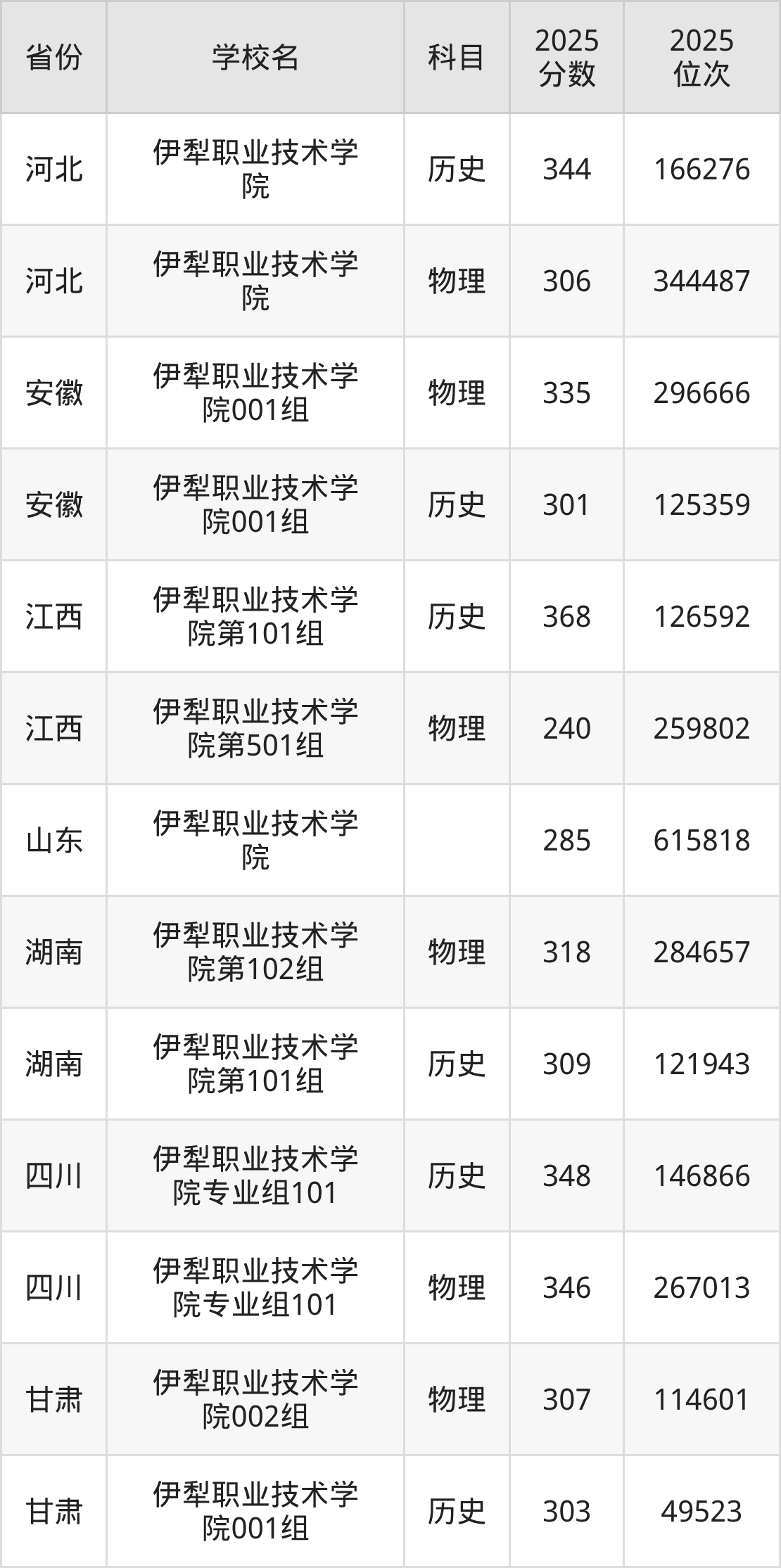 下面是伊犁职业技术学院2025年录取分数线各省汇总,一起来了解下吧。