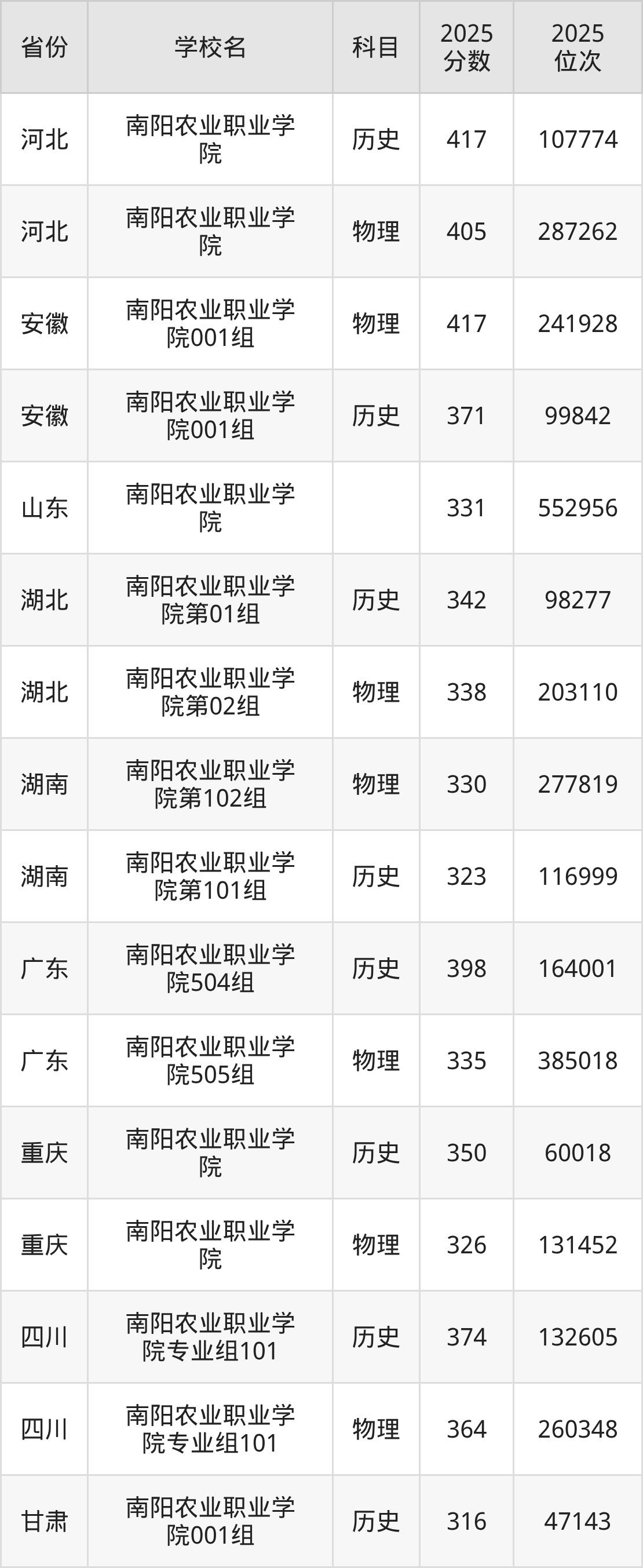 下面是南阳农业职业学院2025年录取分数线各省汇总,一起来了解下吧。
