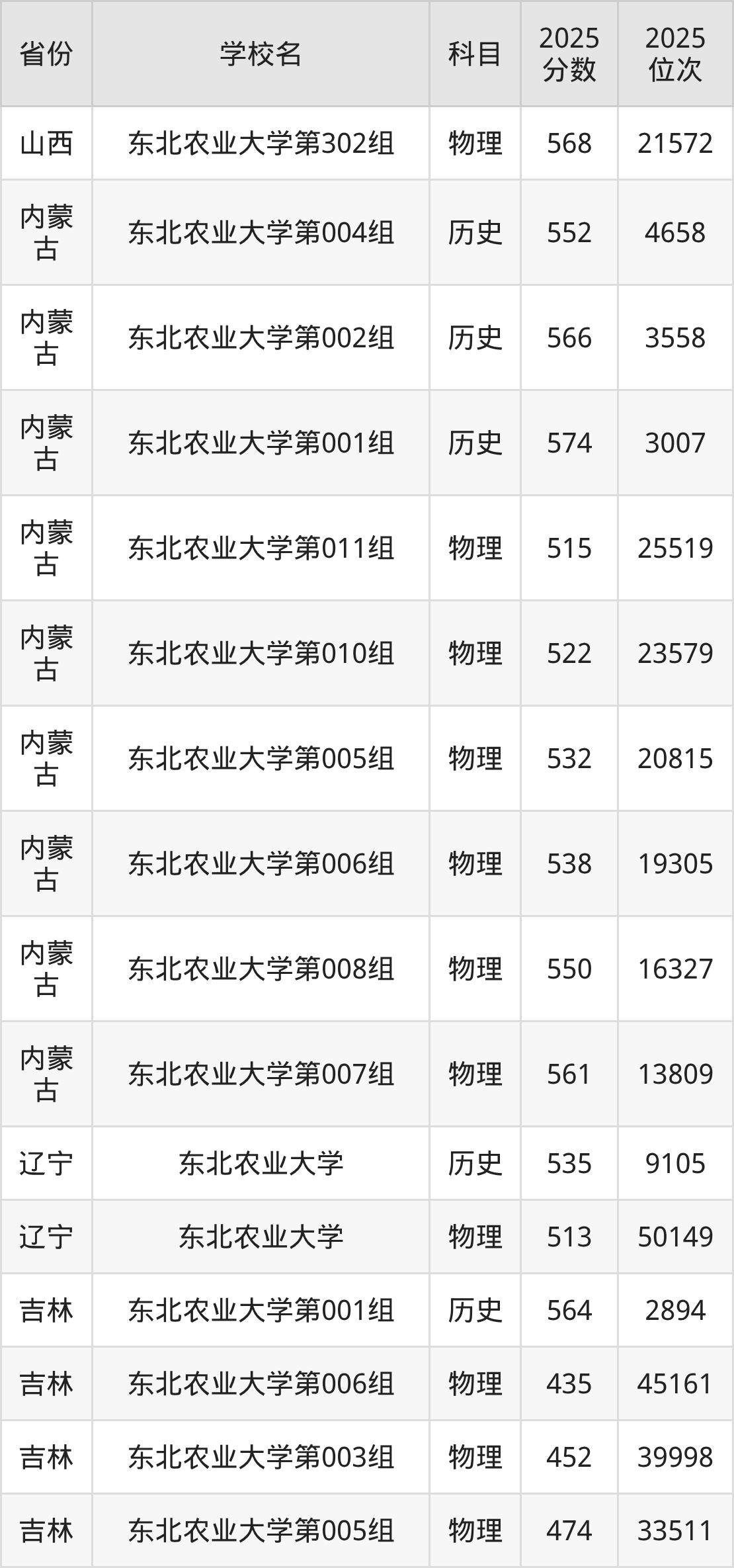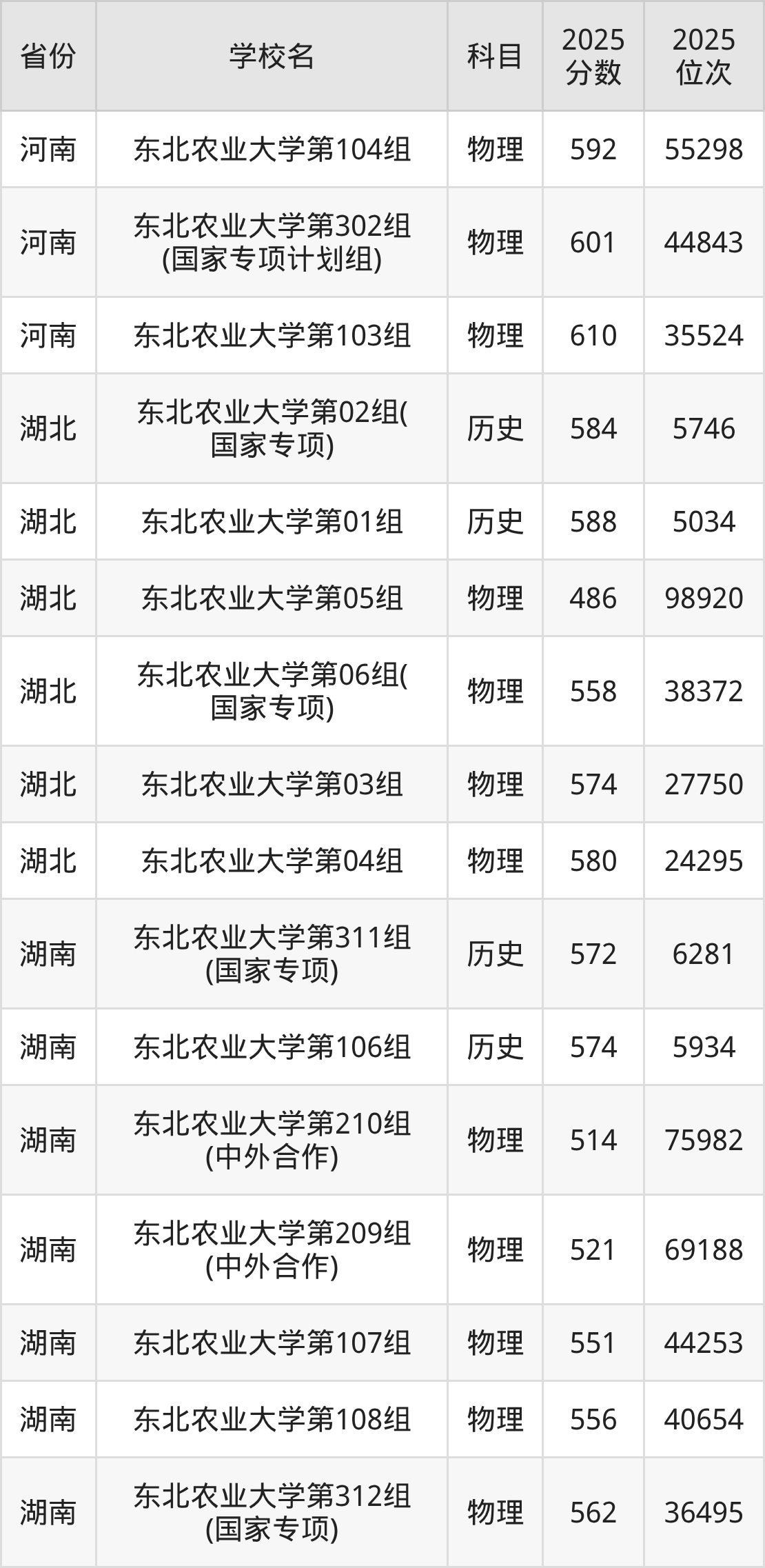 | 东北农业大学第 006组(国家 专项) | 历史 | 551 | 3342 |