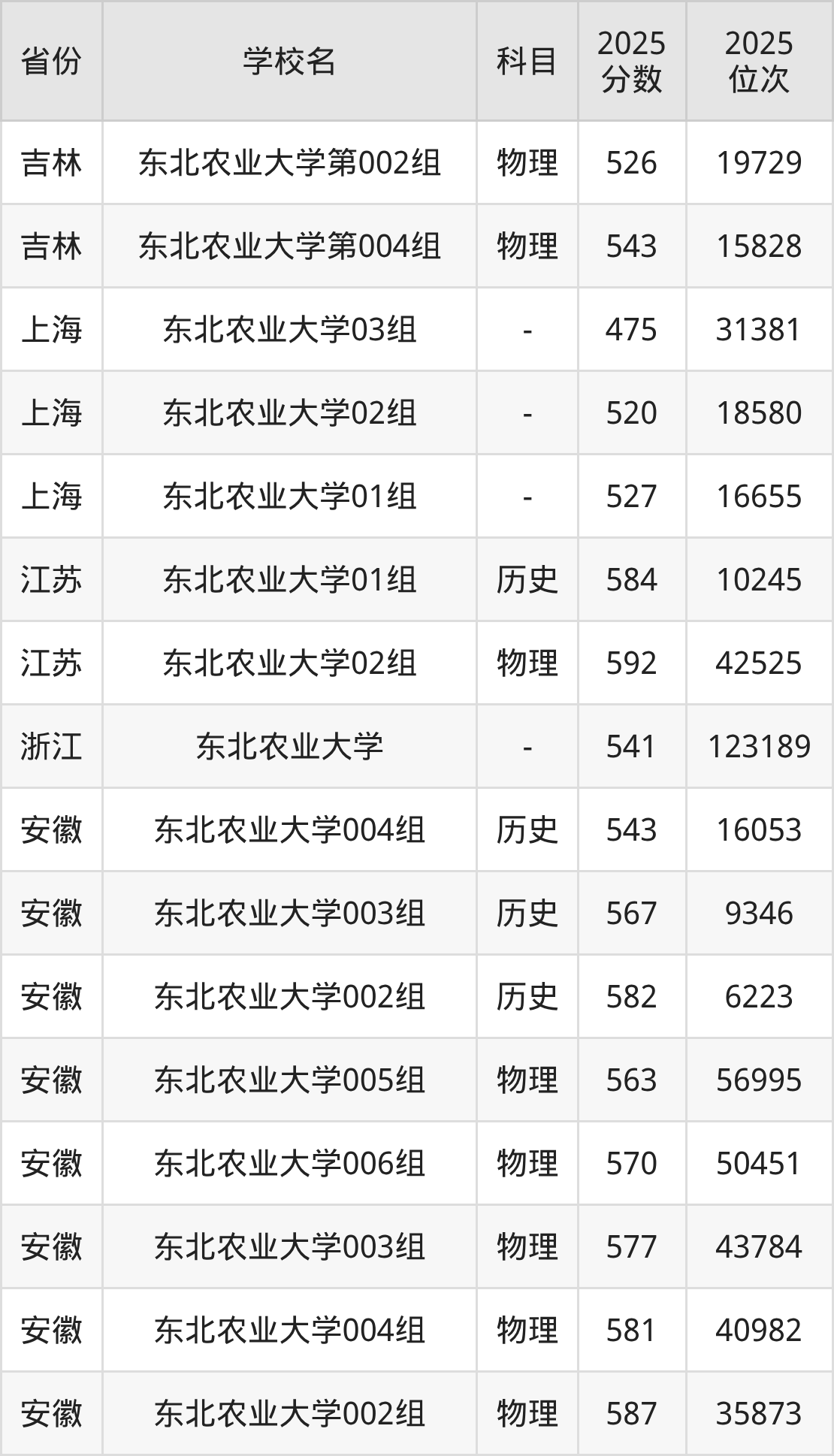 | 东北农业大学第 025组(地方 专项) | 物理 | 536 | 20638 |