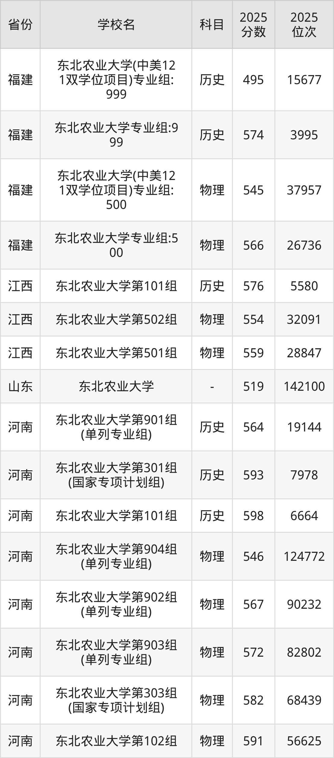 | 东北农业大学第 022组(国家 专项) | 物理 | 547 | 17572 |