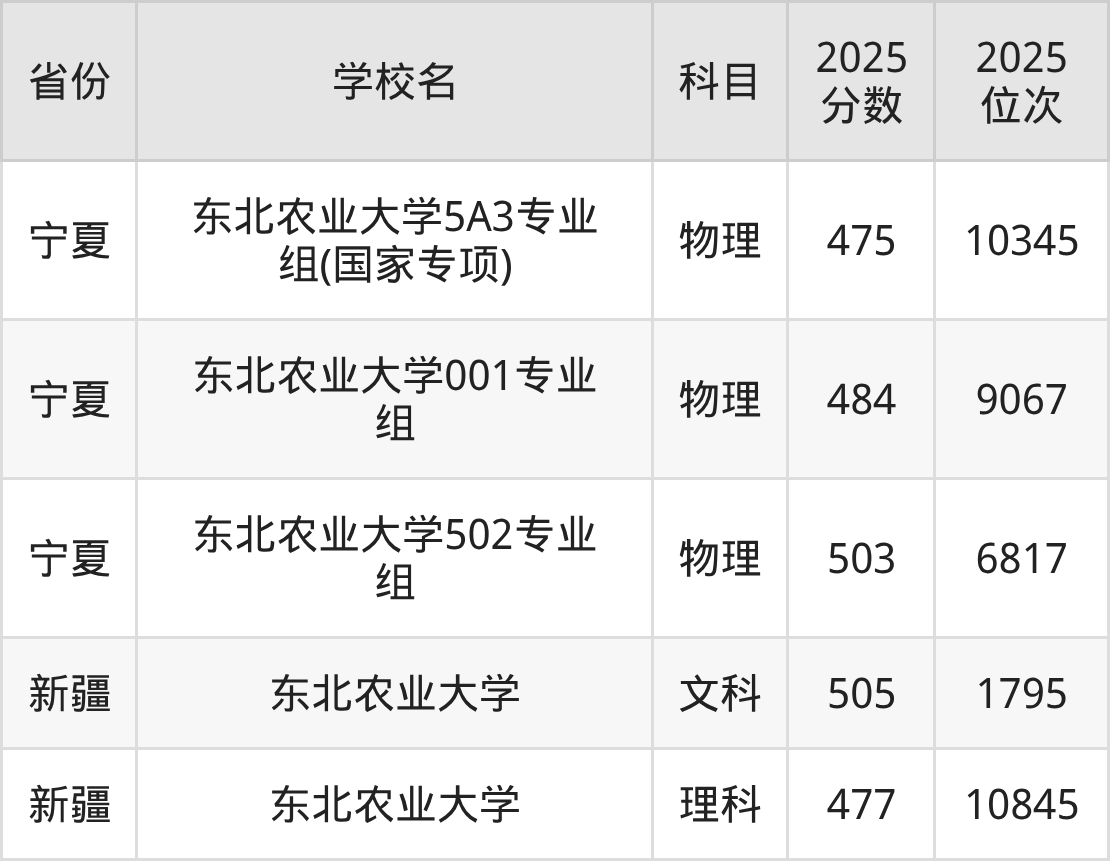 2025年东北农业大学在省内,其中历史类最低分是523分、对应位次是5616名;物理类最低分是486分,对应位次是37001名。