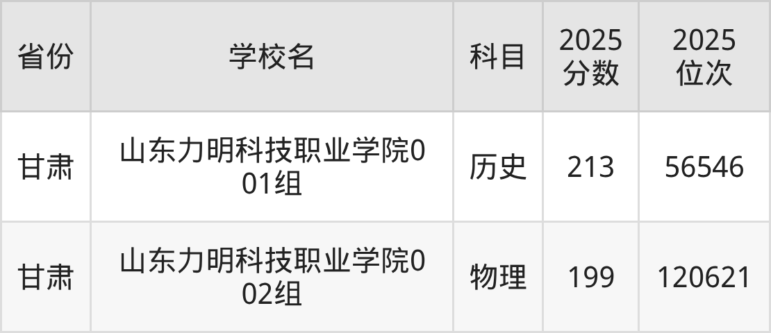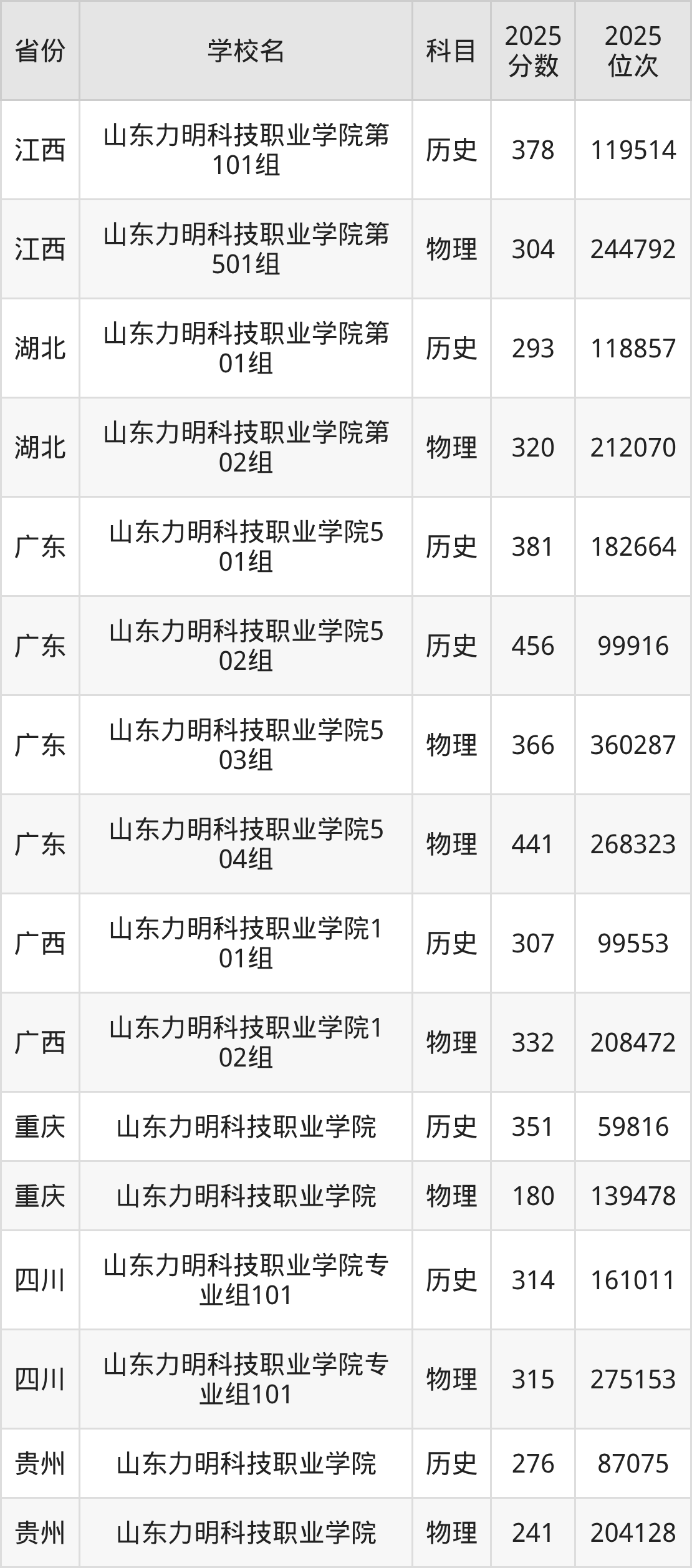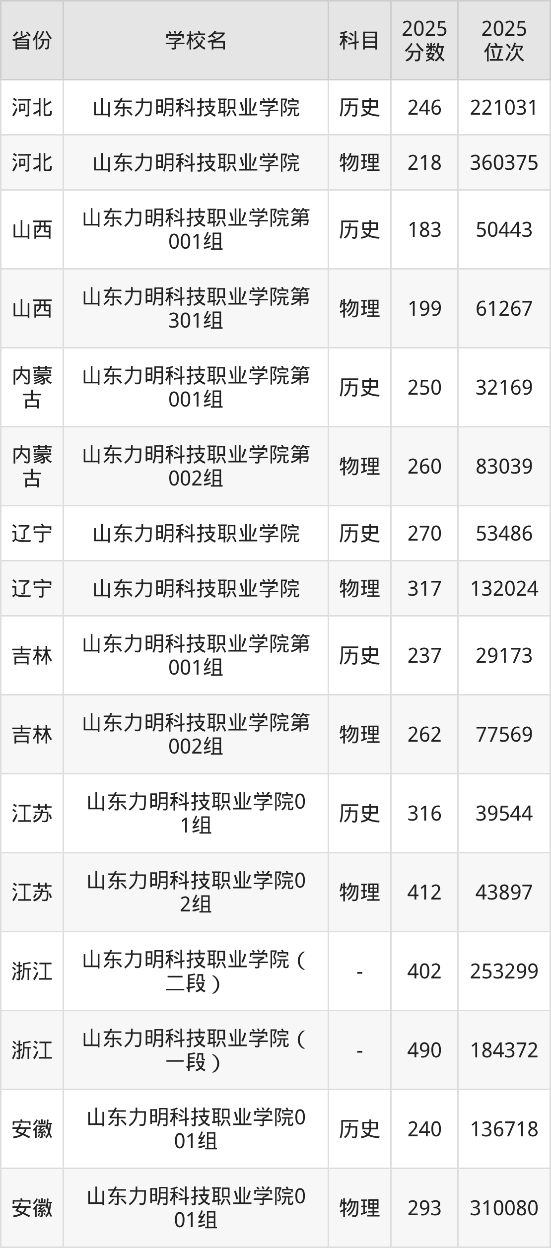 下面是山东力明科技职业学院2025年录取分数线各省汇总,一起来了解下吧。