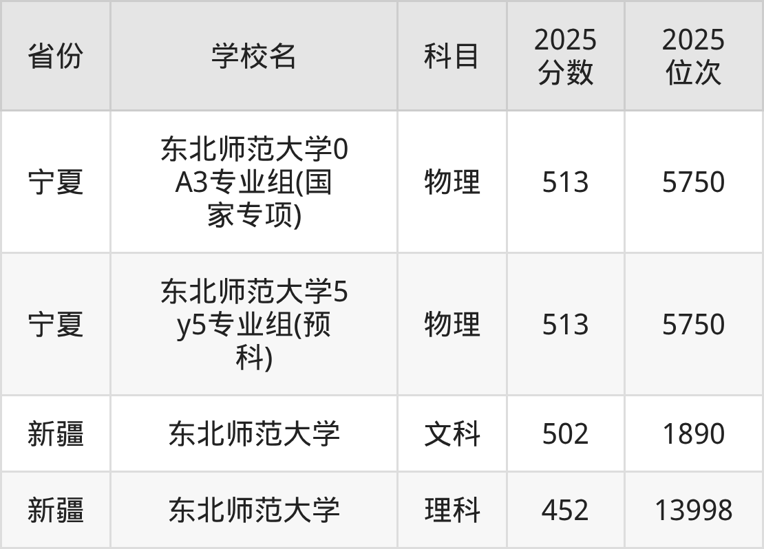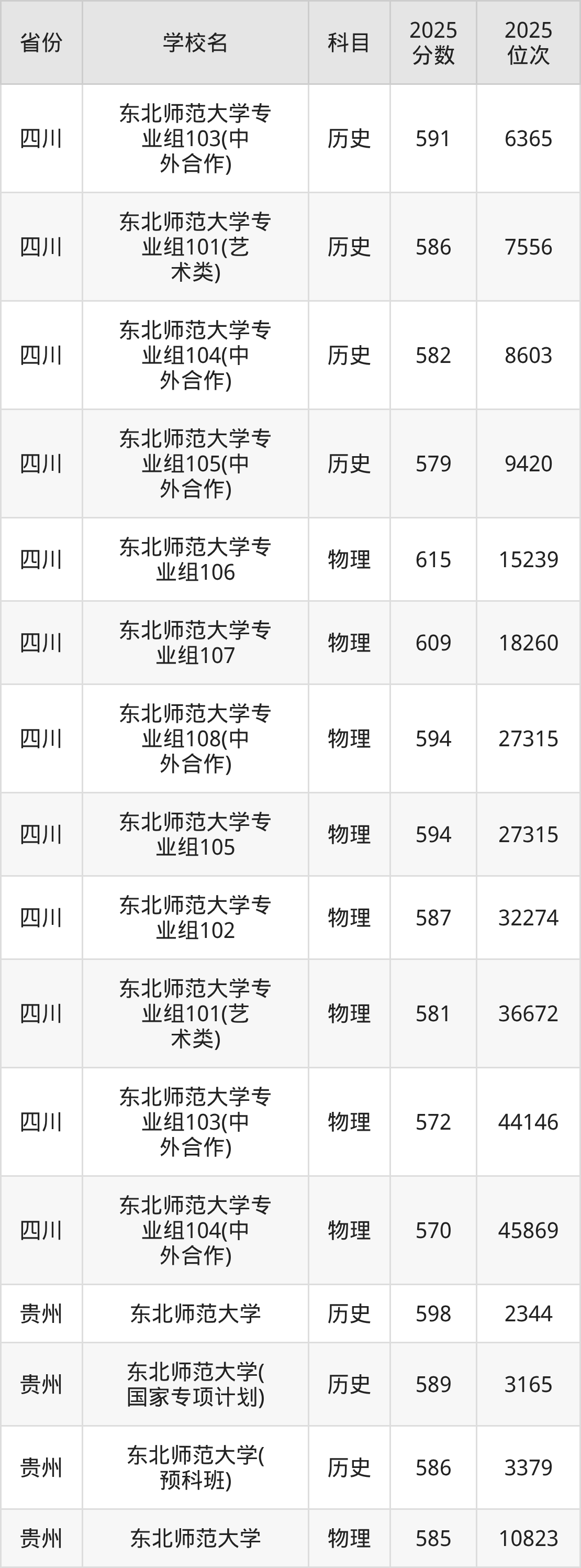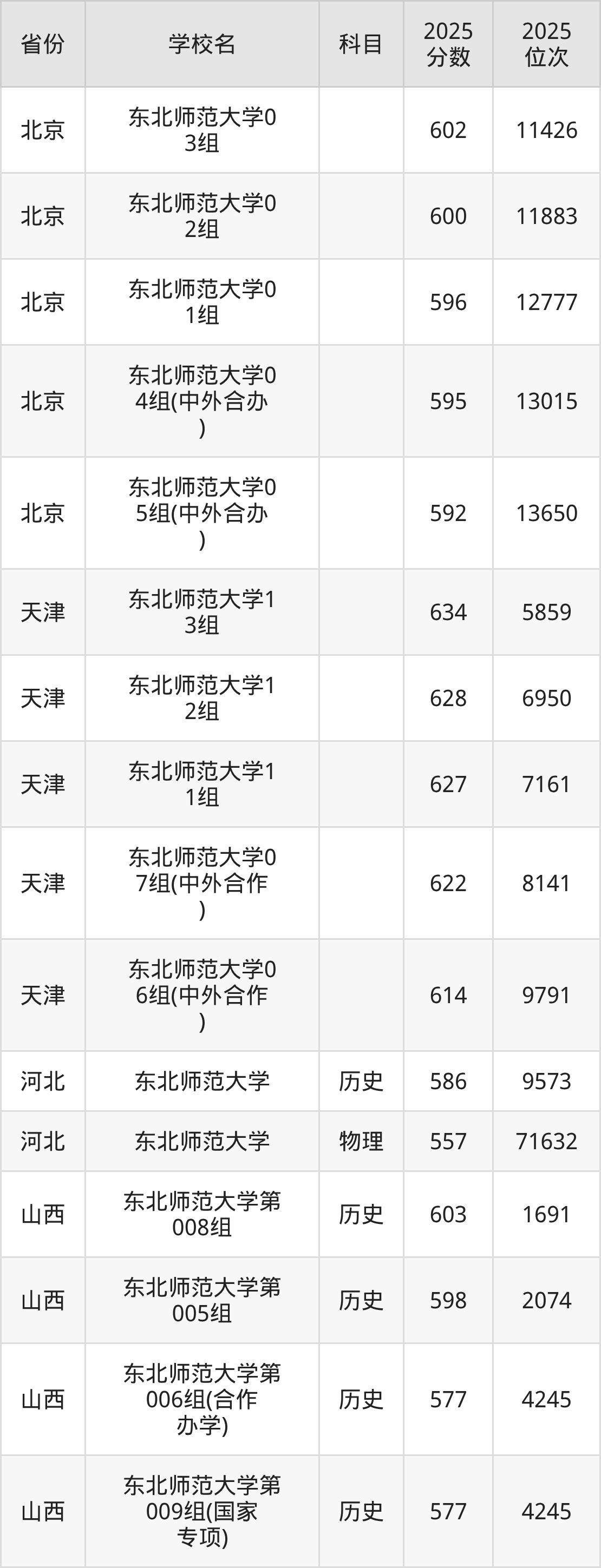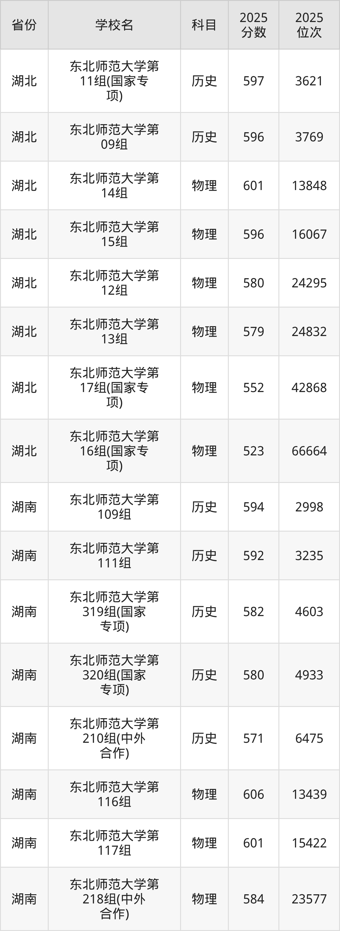 2025年东北师范大学历史类最低分562分(3025名)、物理类最低分540分(16442名)。