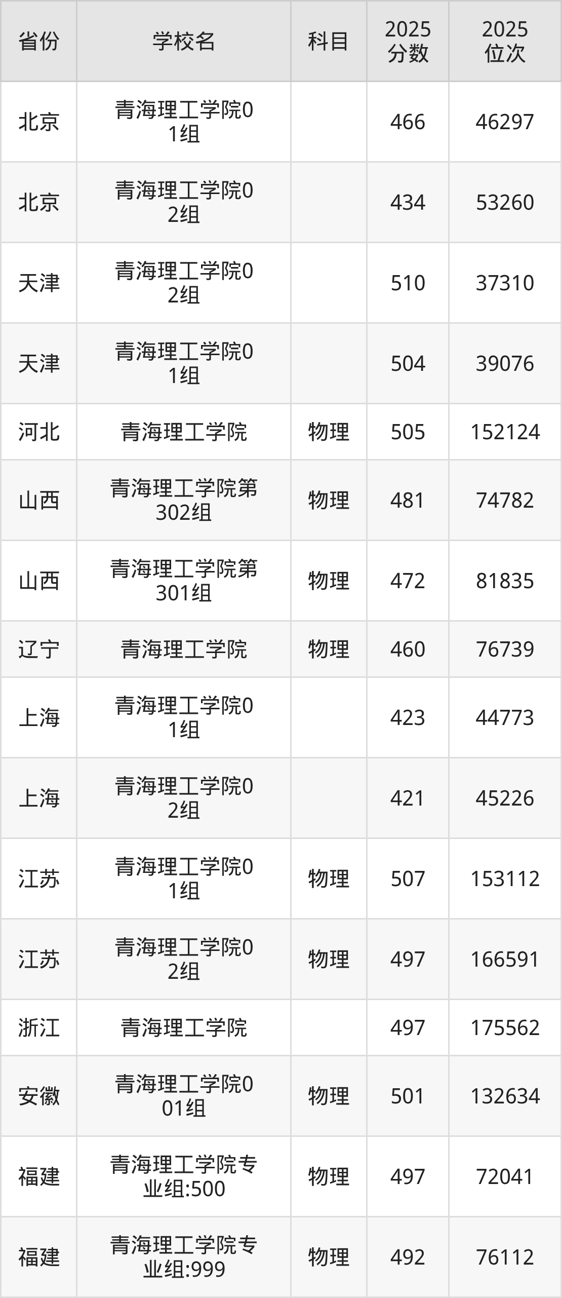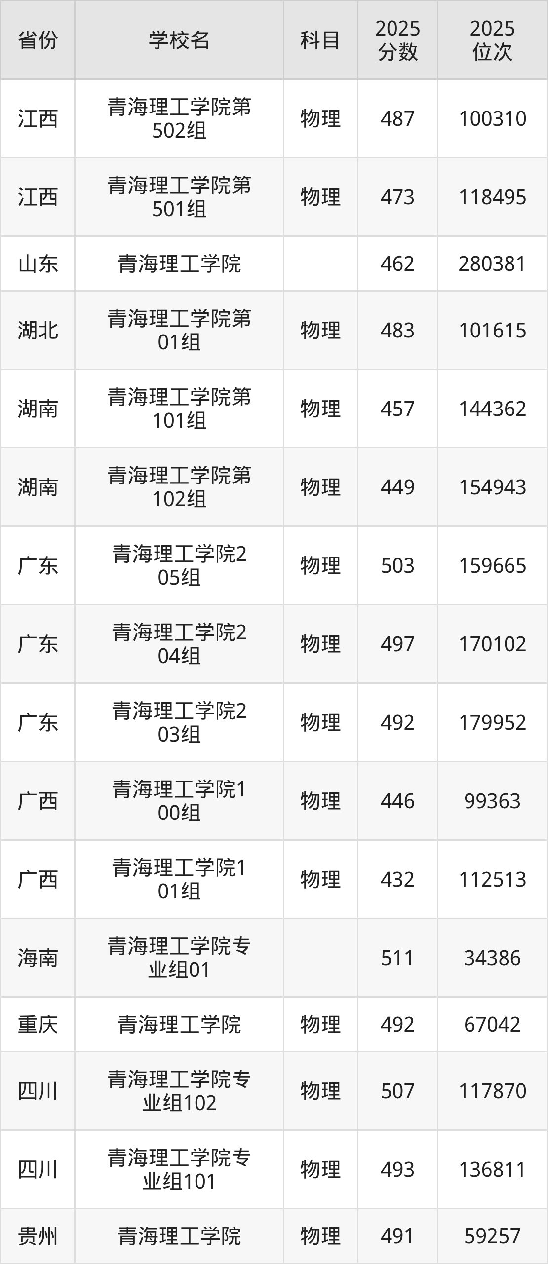 下面是青海理工学院2025年录取分数线各省汇总,一起来了解下吧。