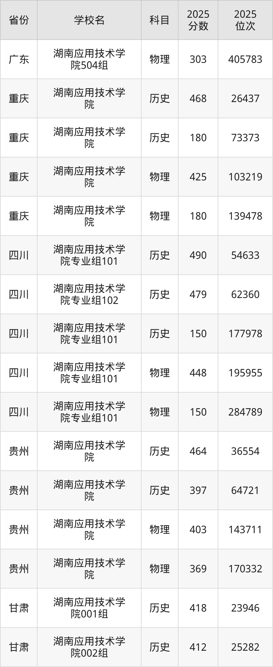 2025年湖南应用技术学院历史类最低分452分(49867名)、物理类最低分425分(186782名)。