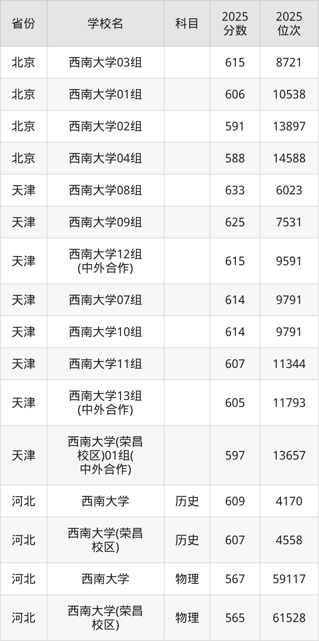 下面是西南大学2025年录取分数线各省汇总,一起来了解下吧。